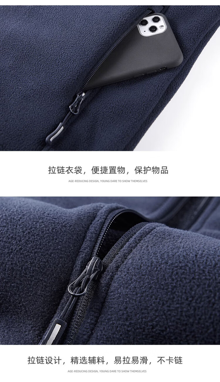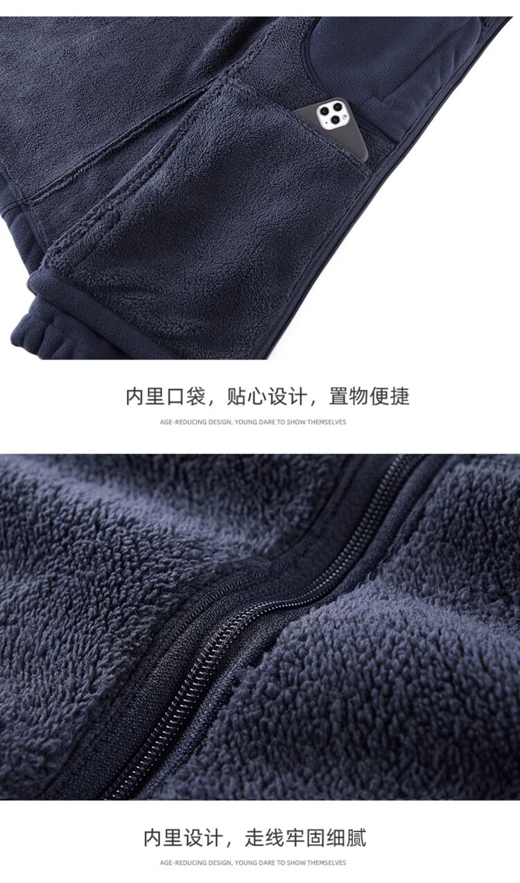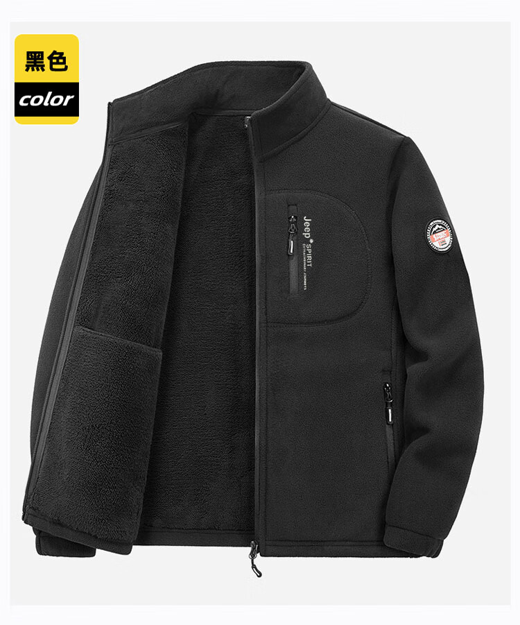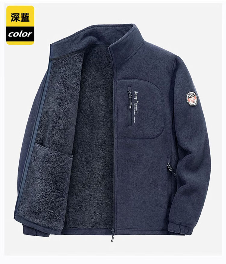 JEEP SPIRIT Jeep Jacket Men's Spring and Autumn Stand Collar Polar Fleece Jacket Men's Velvet Cardigan Sweater Men's Dark Gray XL