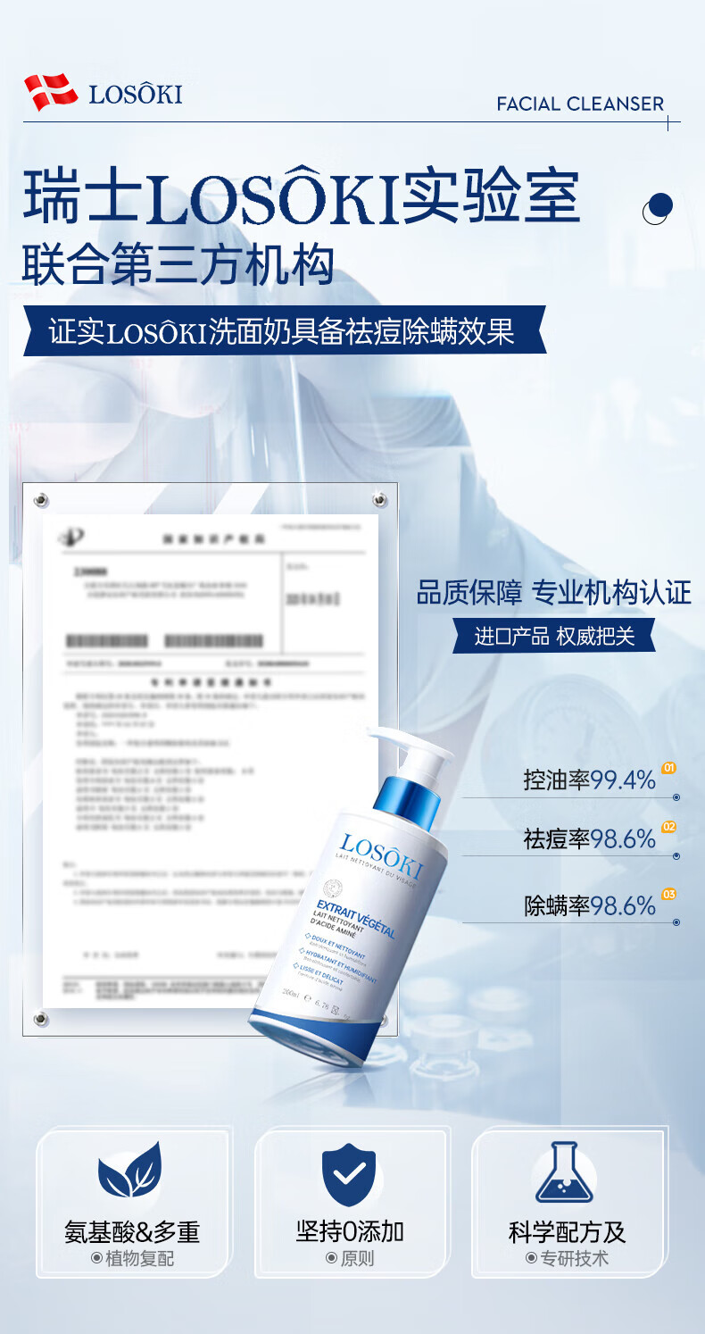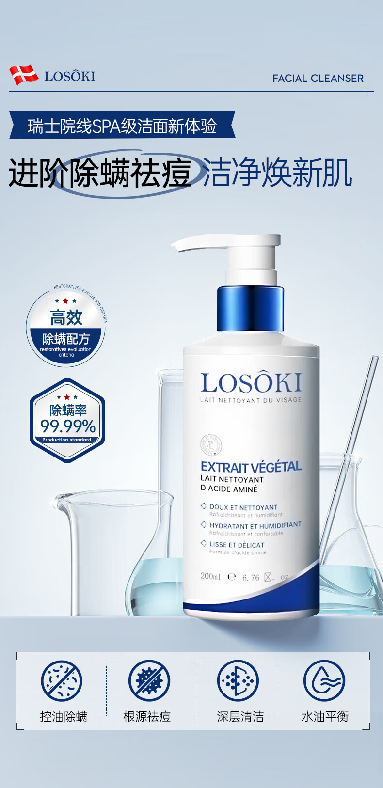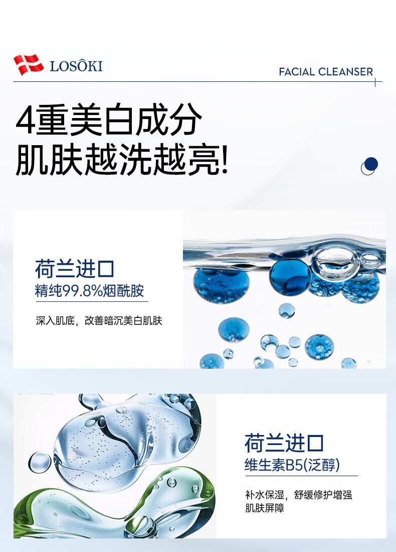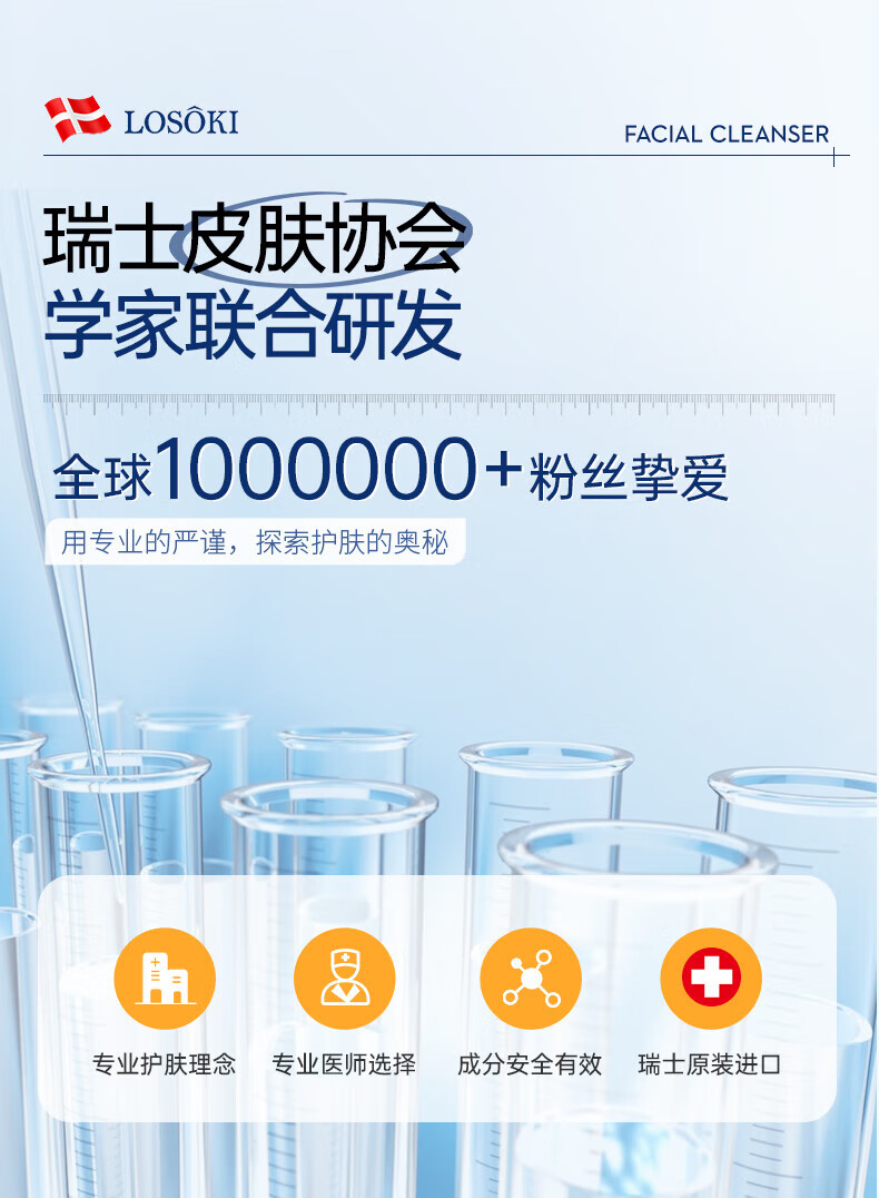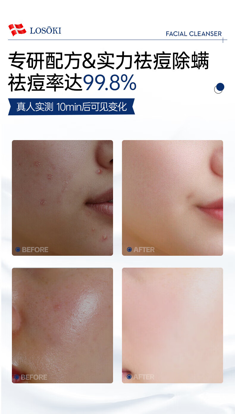 Losoki Swiss imported amino acid facial cleanser, whitening, oil control, acne removal, mite removal, blackhead removal, special facial cleanser for men and women
