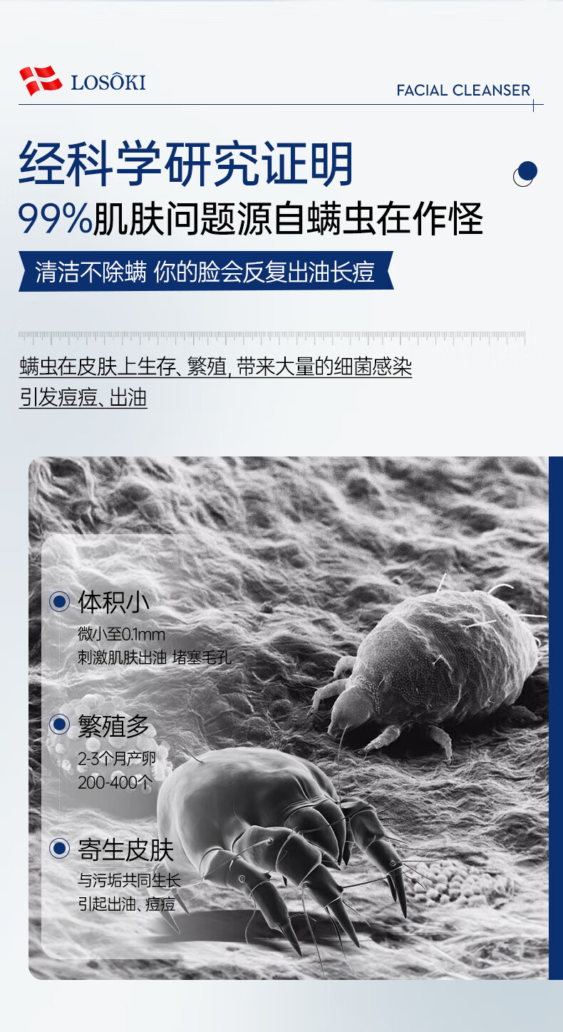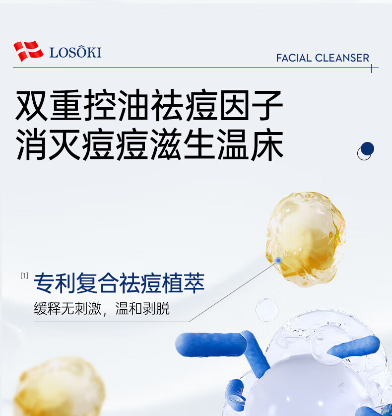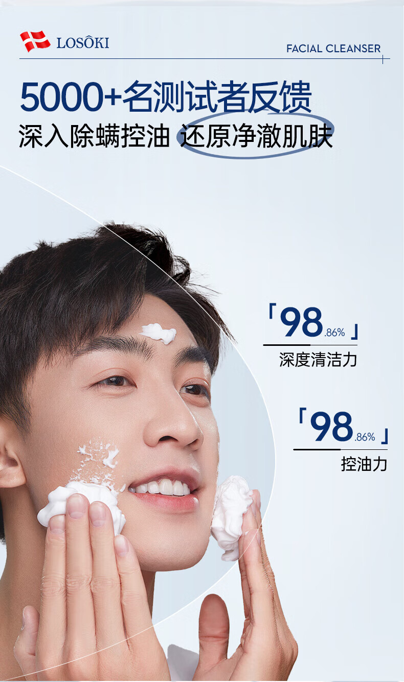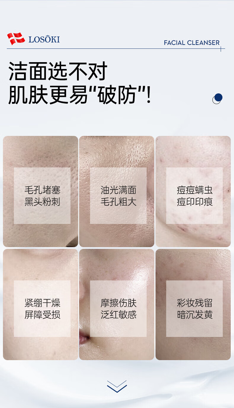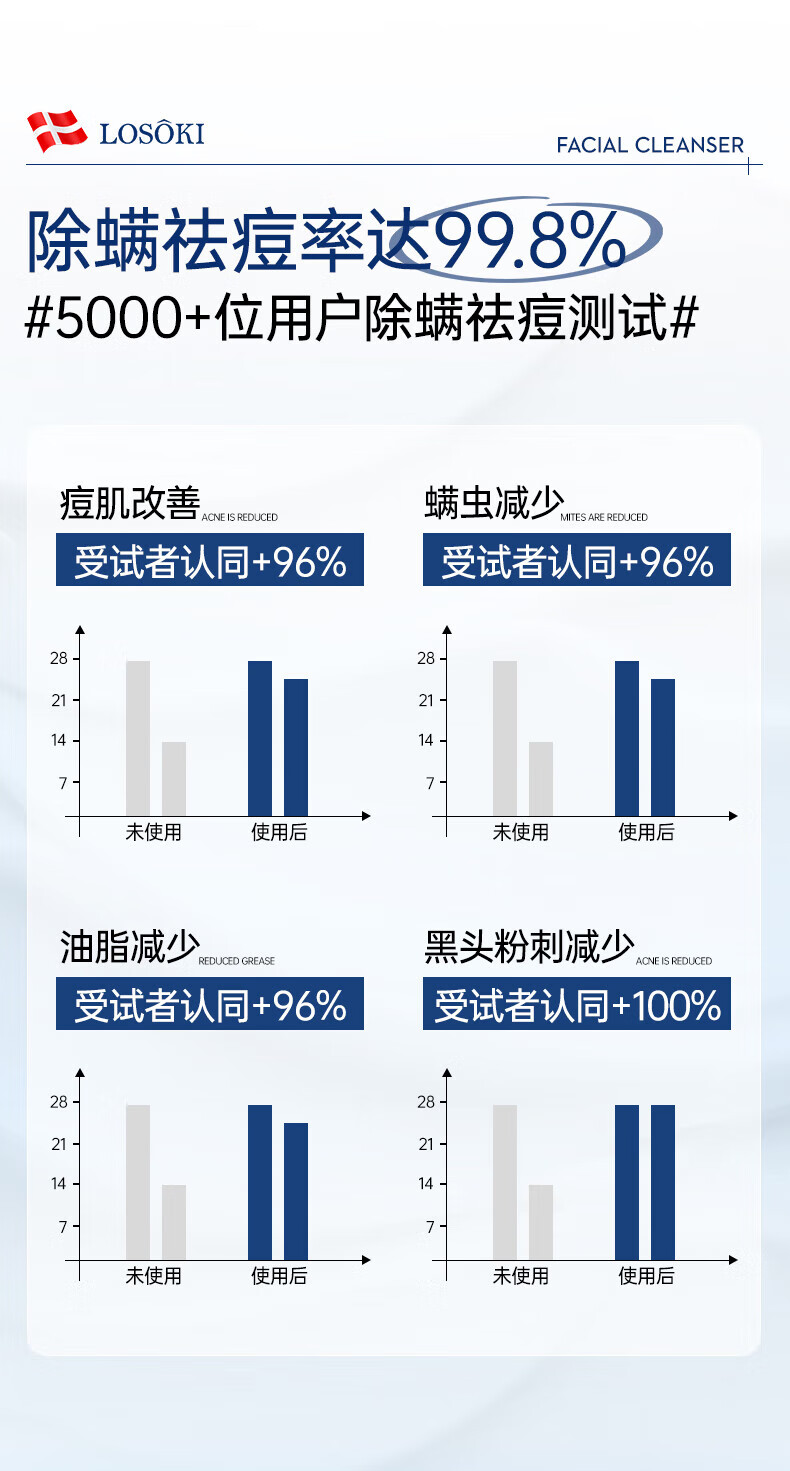 Losoki Swiss imported amino acid facial cleanser, whitening, oil control, acne removal, mite removal, blackhead removal, special facial cleanser for men and women