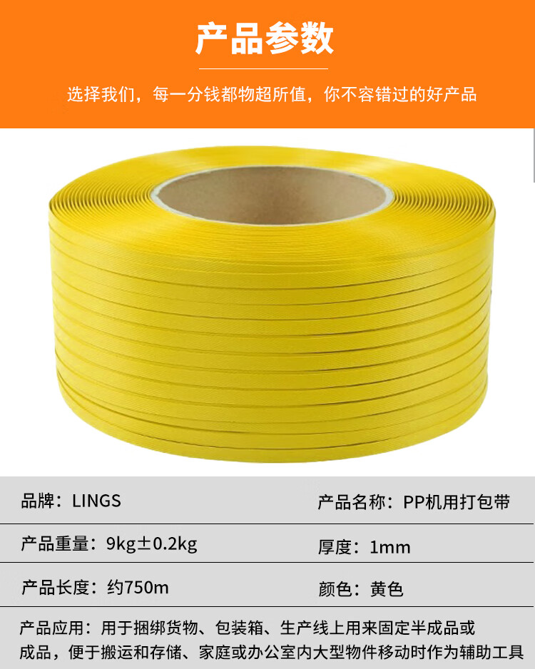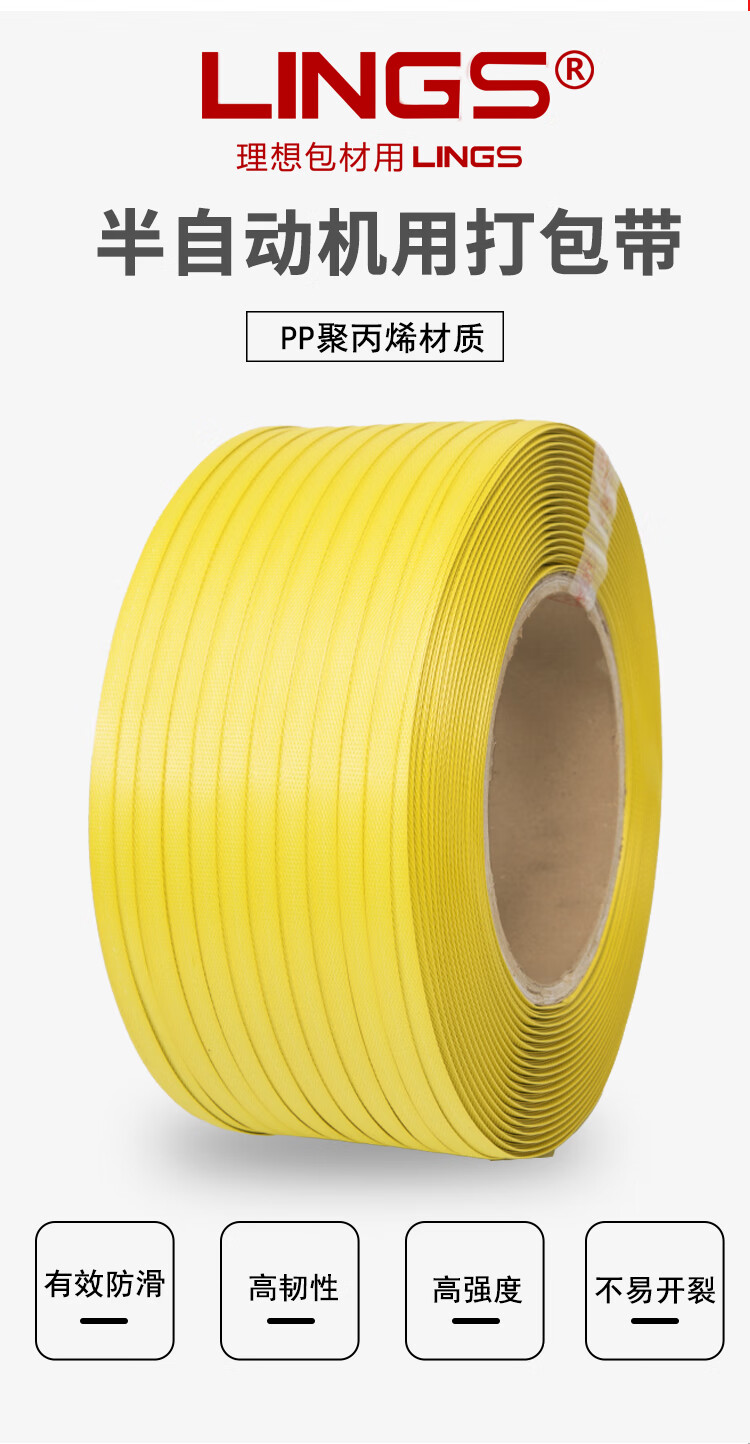 LINGS PP plastic machine belt 1310 hot melt packing belt, transparent cargo strapping belt for semi-automatic packing machine, manual packaging belt, about 8kg/roll (yellow)