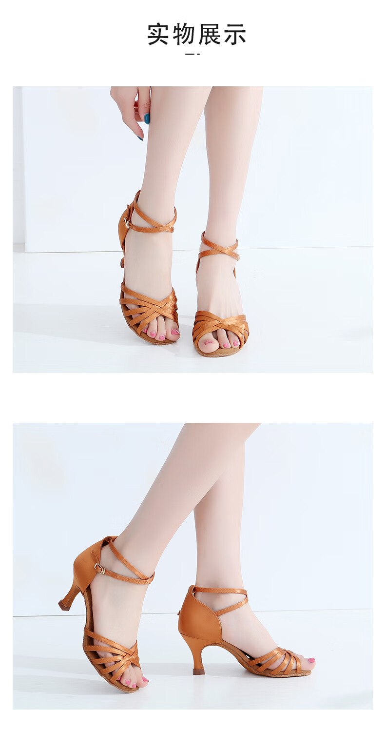 Iron Arrow Latin Dance Shoes Women's High Heels Soft Sole Ballroom Dance Rumba Cha Cha Ballroom Dance Shoes Dark Skin Color (5.5cm) 37