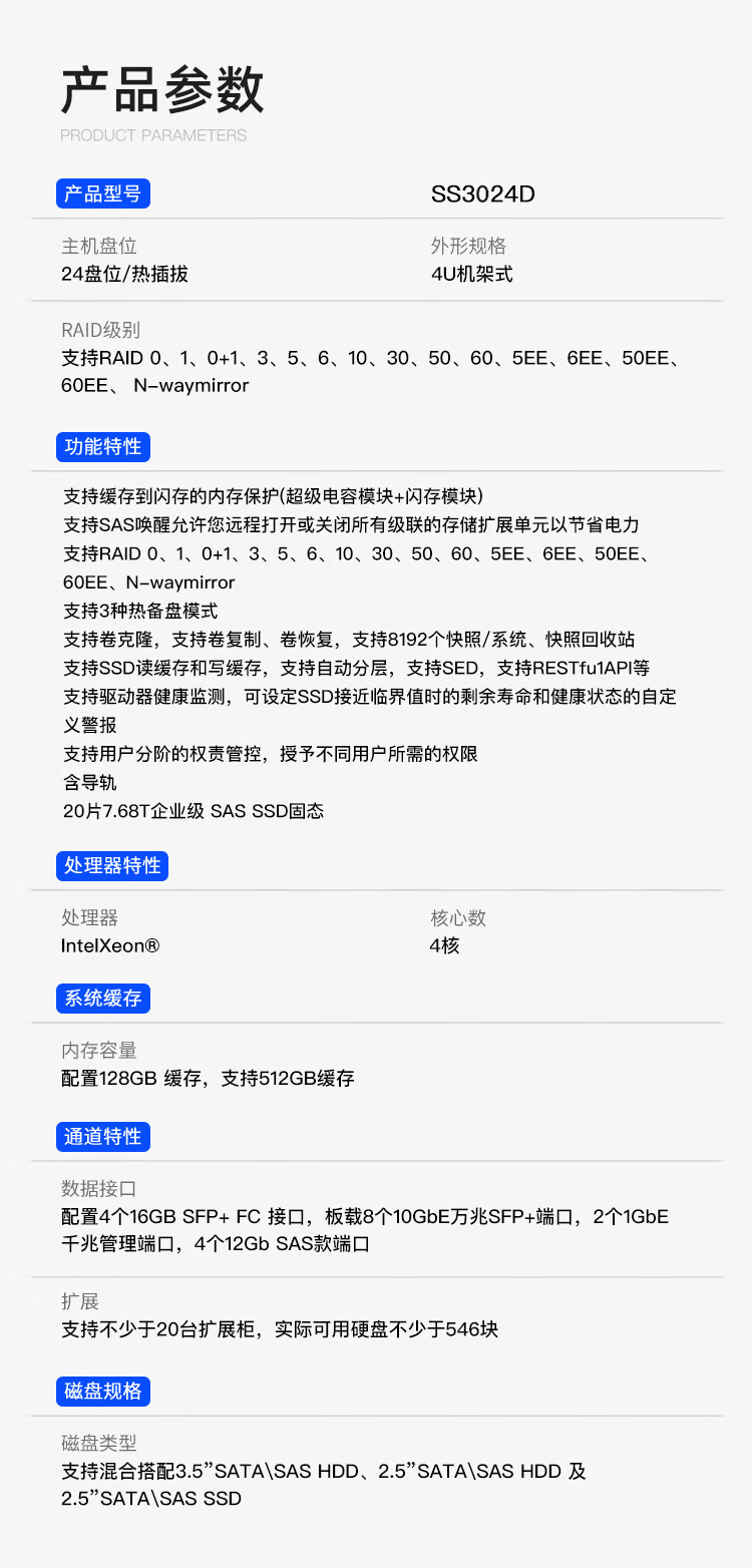 Singstor Xinyun SS3024D high-performance large-capacity 24-bay unified storage disk array memory module set (20 pieces 7.68T enterprise-level)