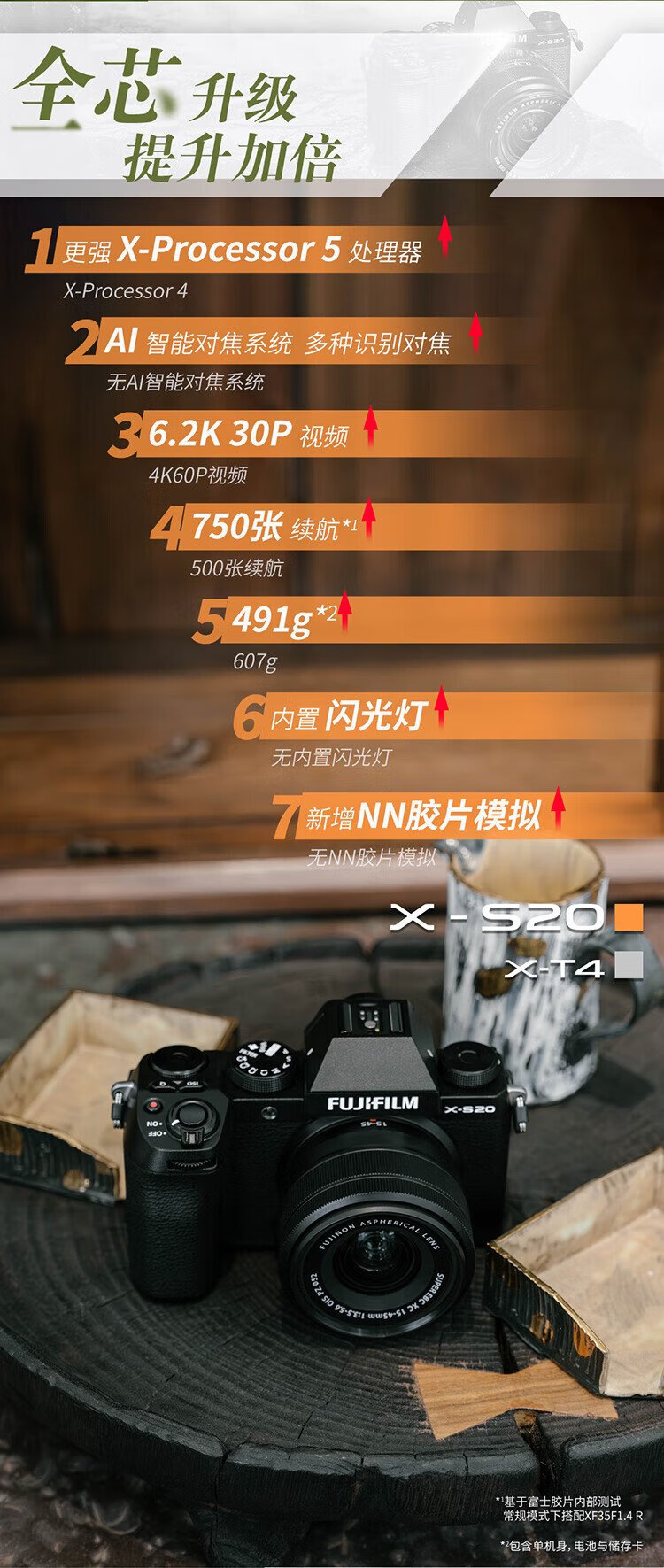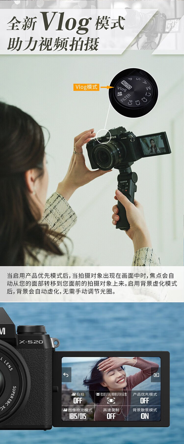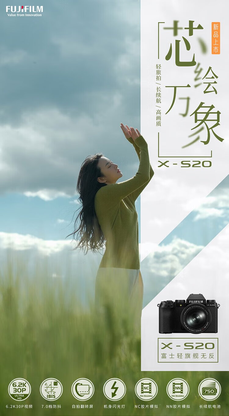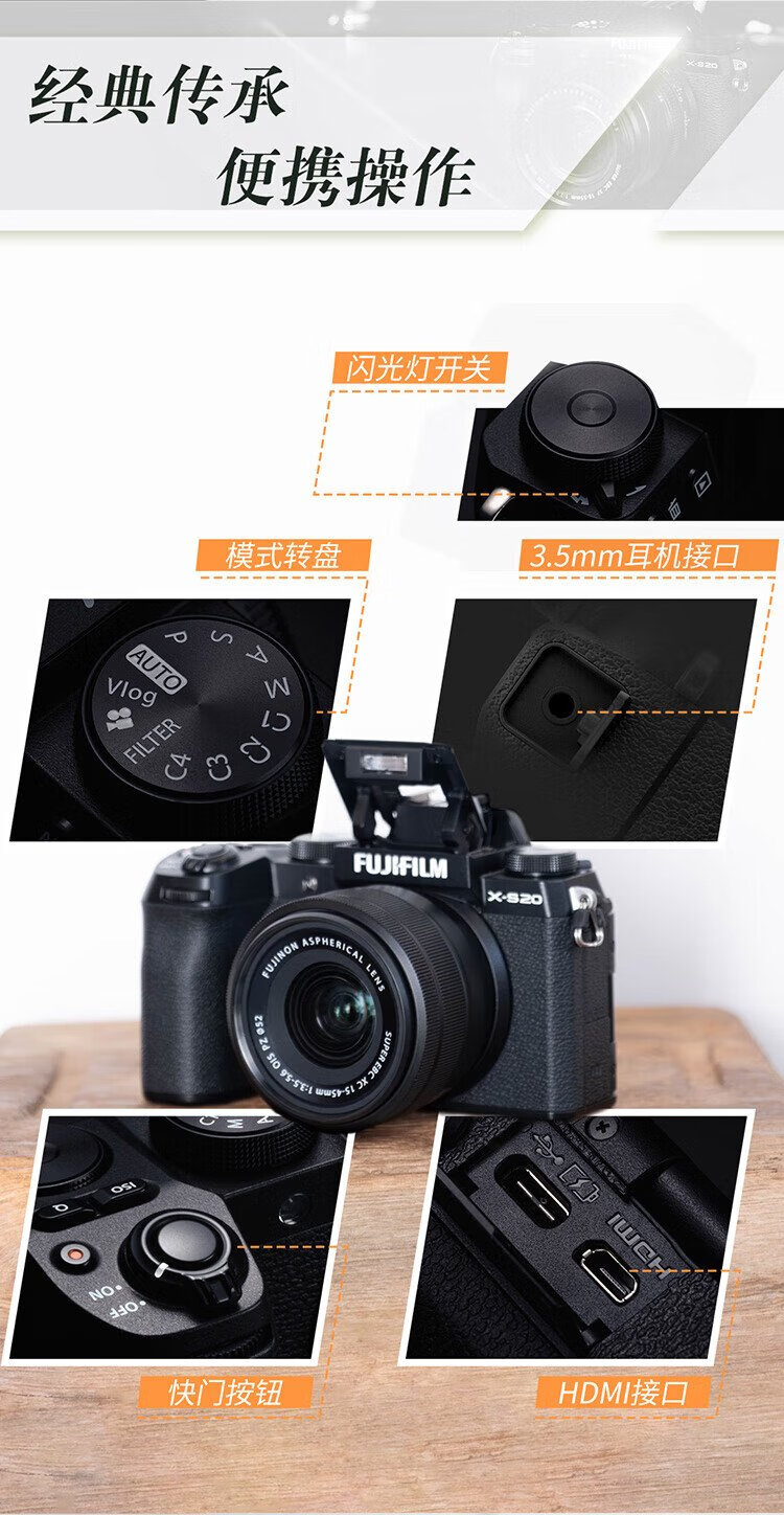 99% new Fuji X-S20 mirrorless camera XC35 lens AI smart focus 750 shots enhanced battery life new Vlog mode highly portable and high performance