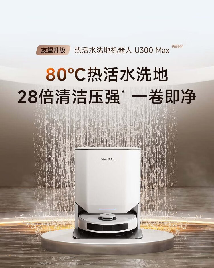 Uwant Youwang floor sweeping robot U300MAX upper and lower water version floor sweeping robot hot water roller sweeping, mopping and drying integrated hot water washing mop high temperature self-cleaning new year product