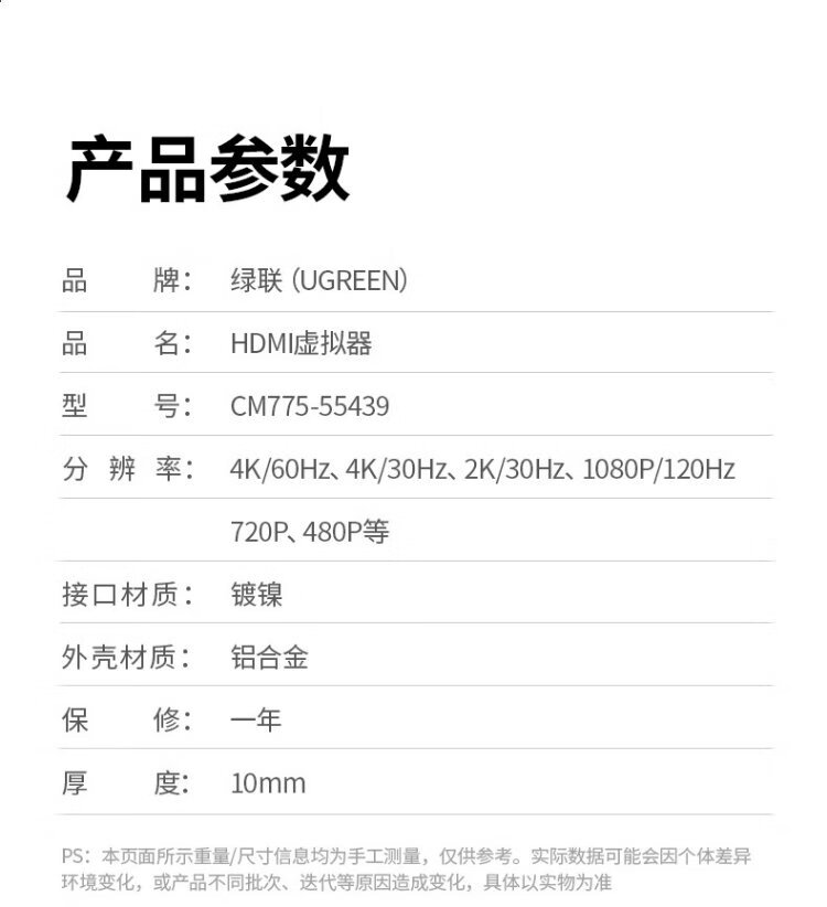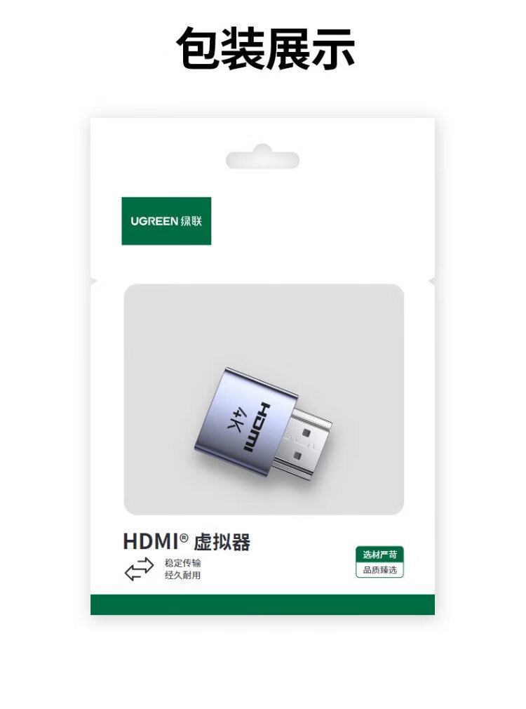 Green Alliance HDMI graphics card spoofer 4K virtual machine decoder fake load extended display remote hang up suitable for laptop host simulation screen 55439