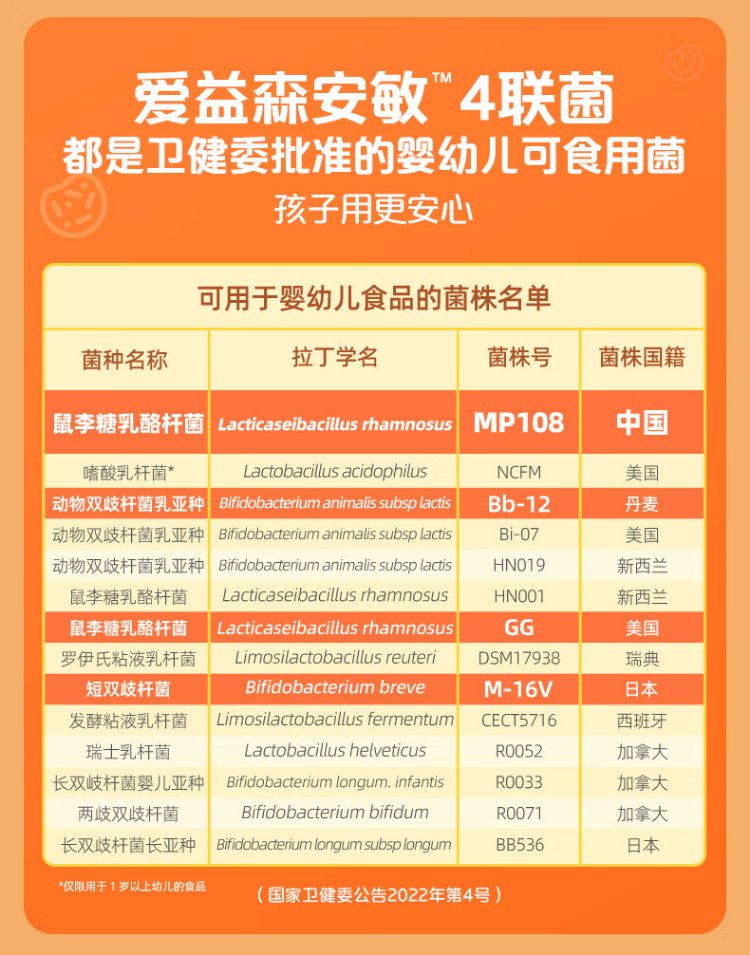 Aiysen Jiabeiite Aiysen Anmin Probiotics Plus Infants and Young Children Available Probiotics MP108 for nasal pollen allergy