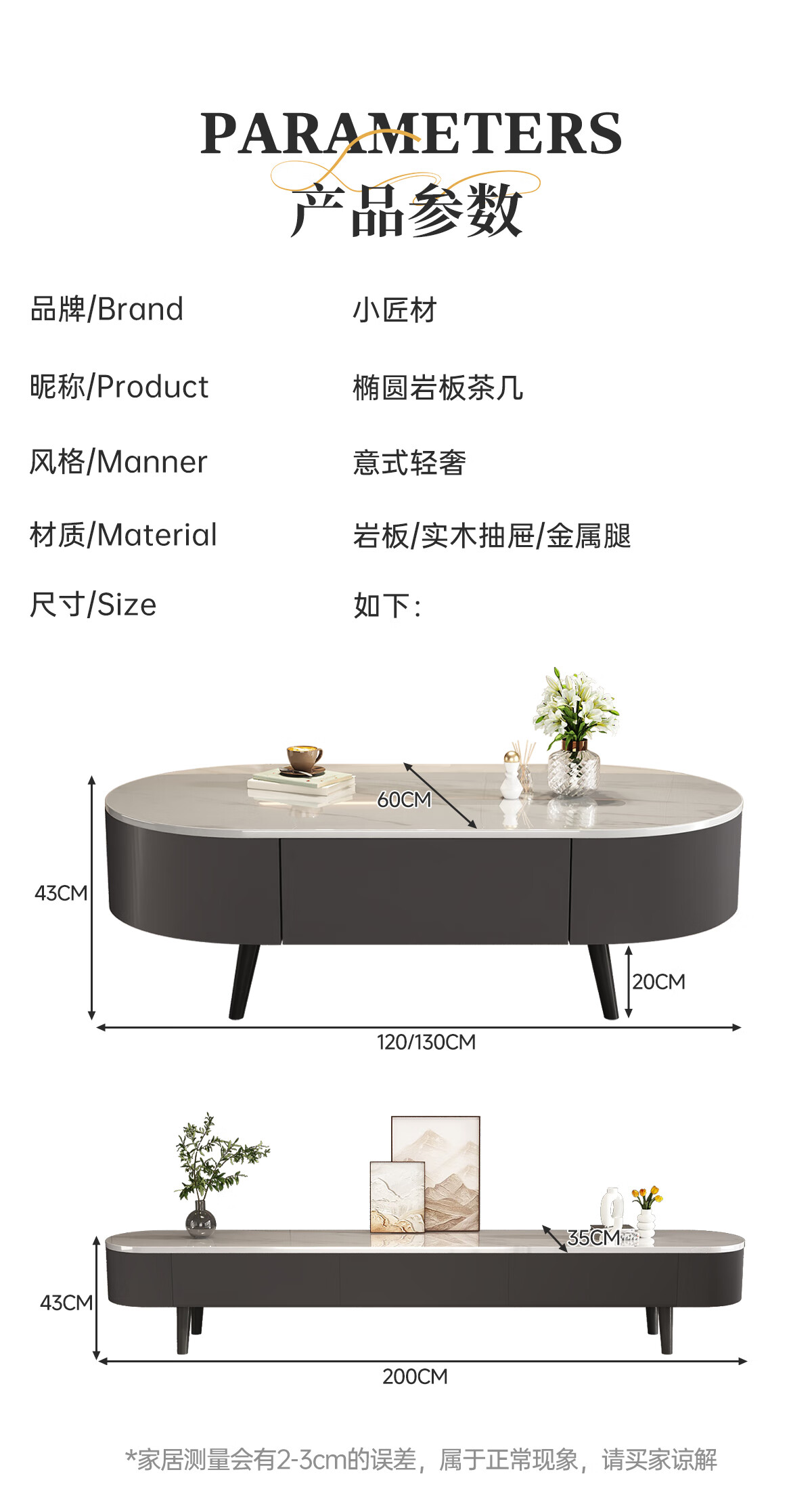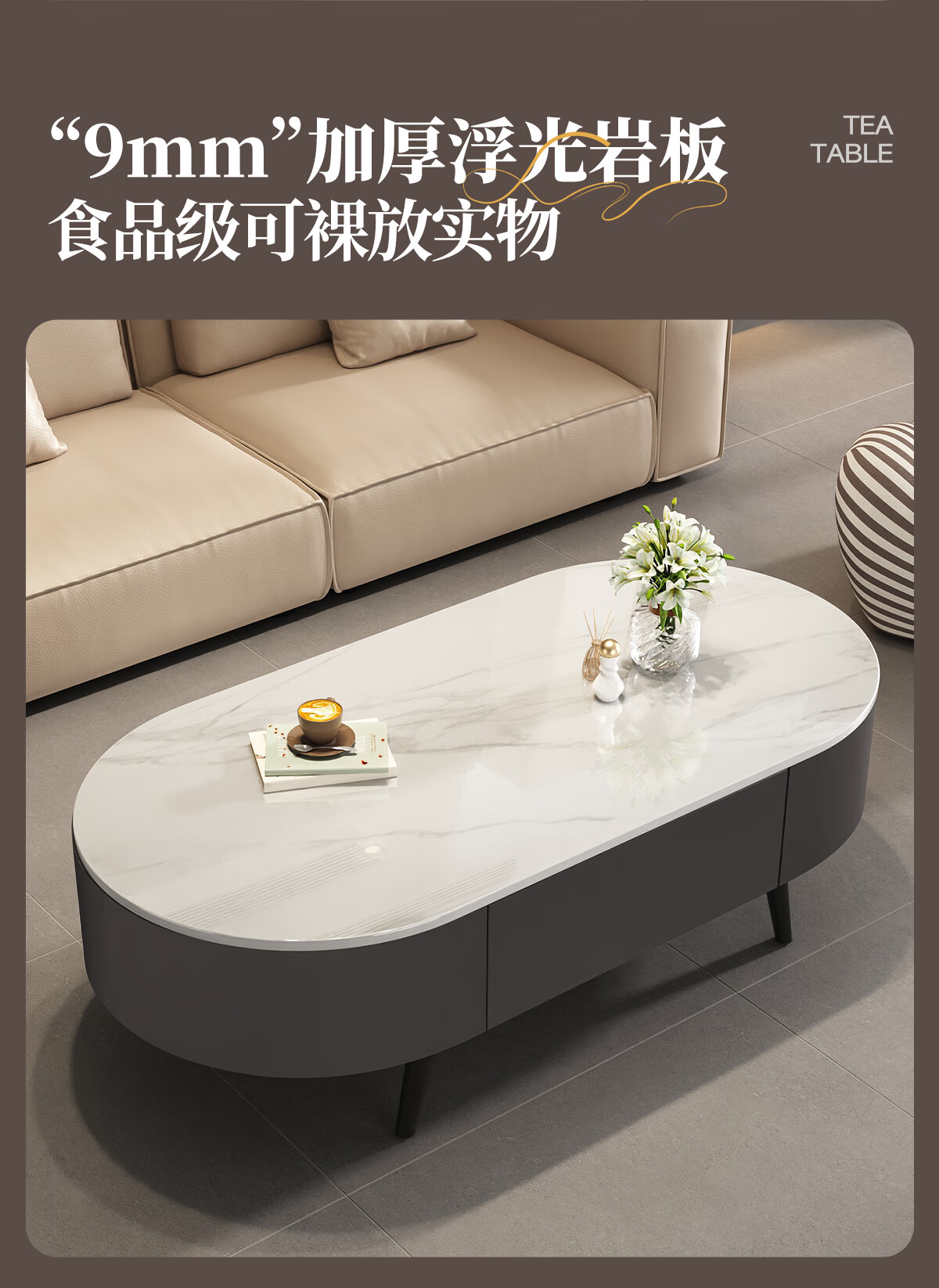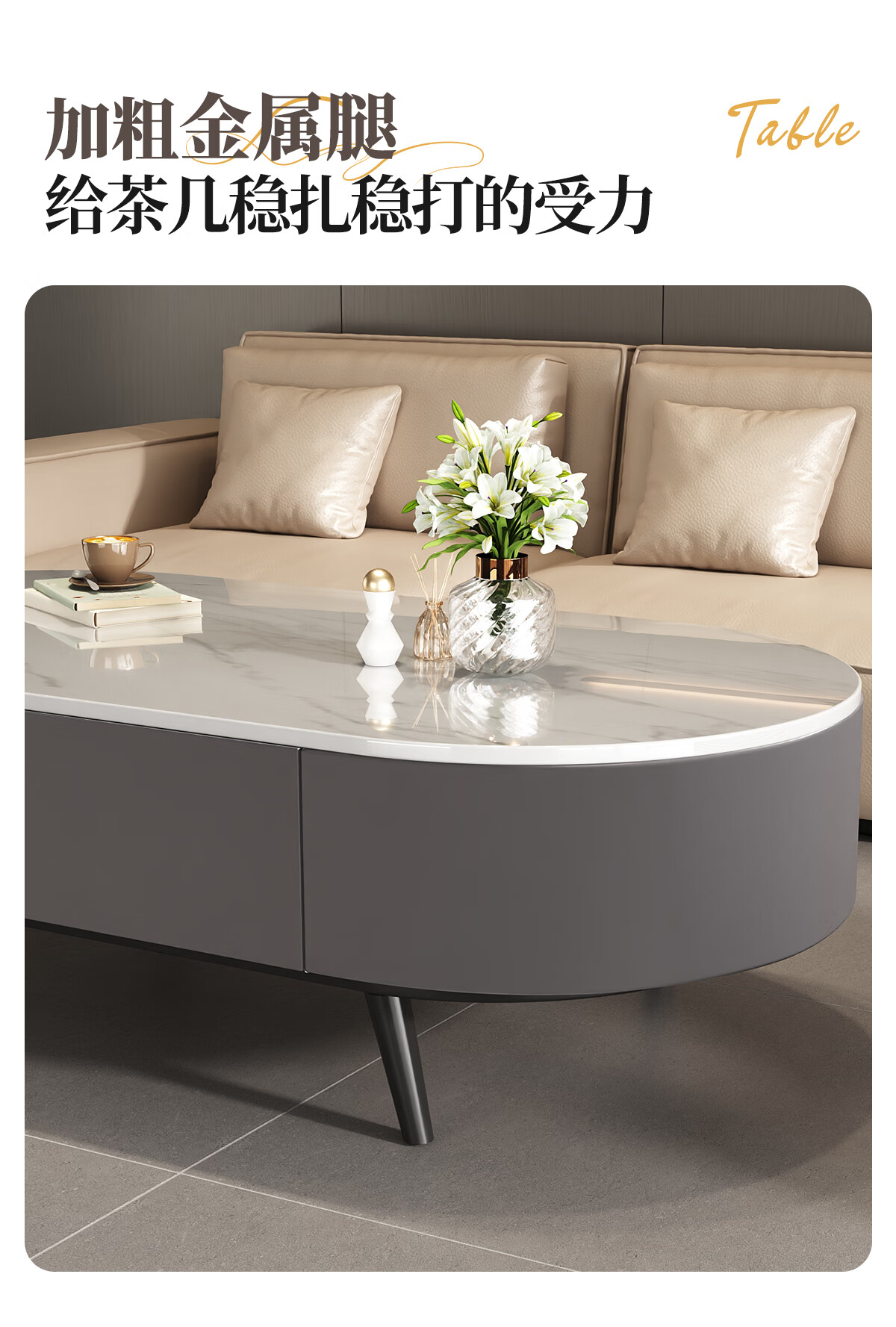 Small craftsman material slate coffee table living room household small apartment simple floor-standing tea table internet celebrity high-end oval coffee table 120 gray