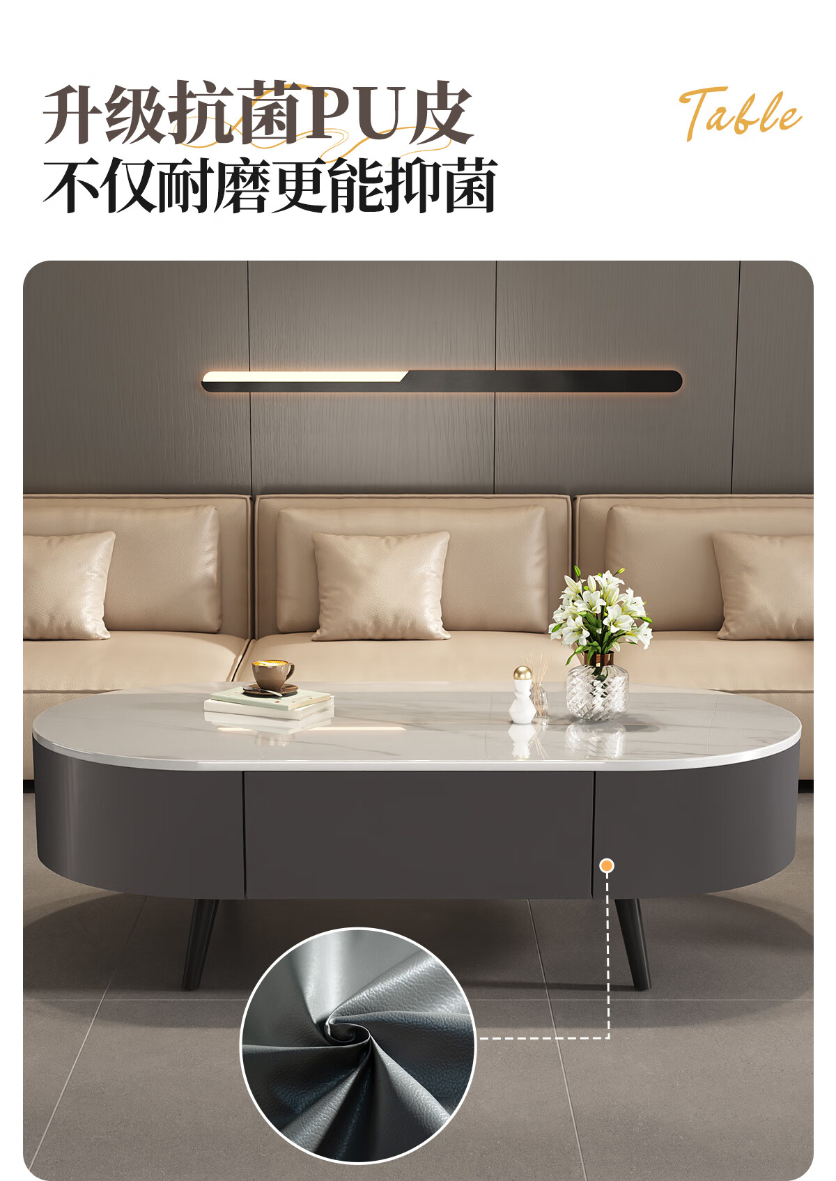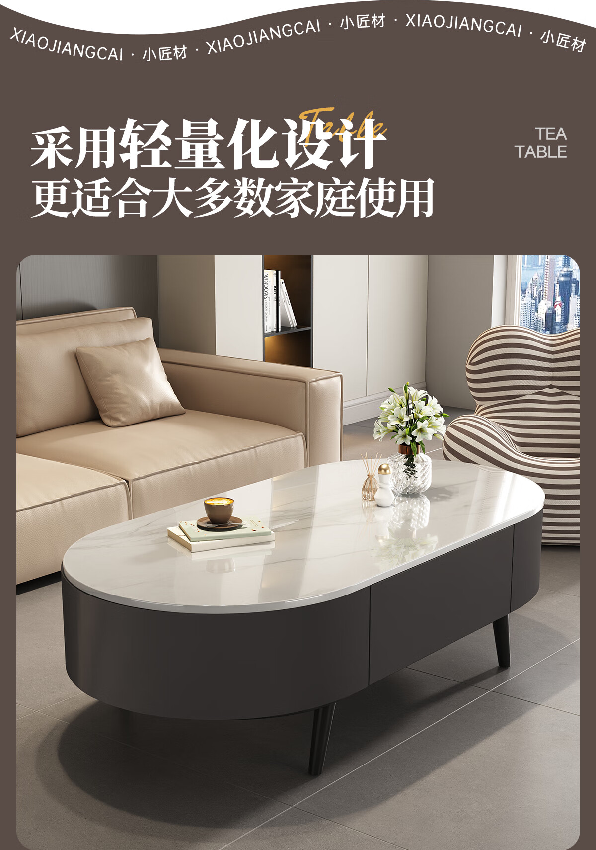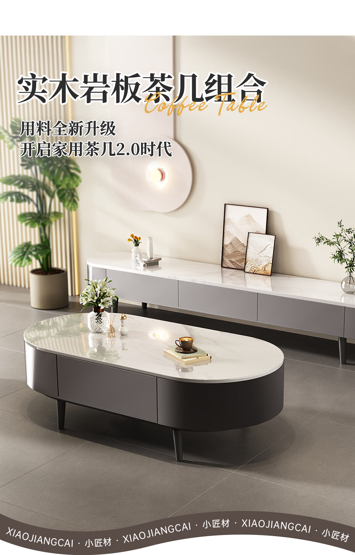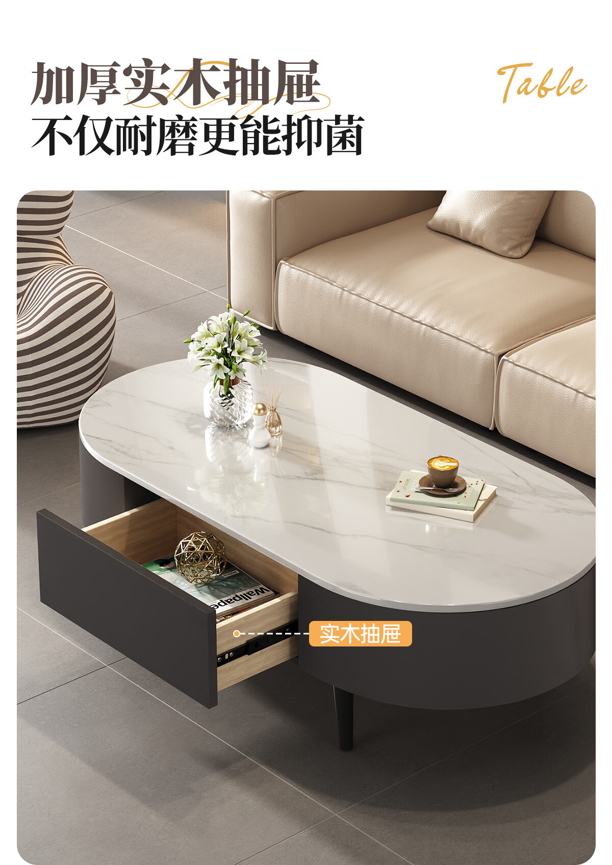Small craftsman material slate coffee table living room household small apartment simple floor-standing tea table internet celebrity high-end oval coffee table 120 gray