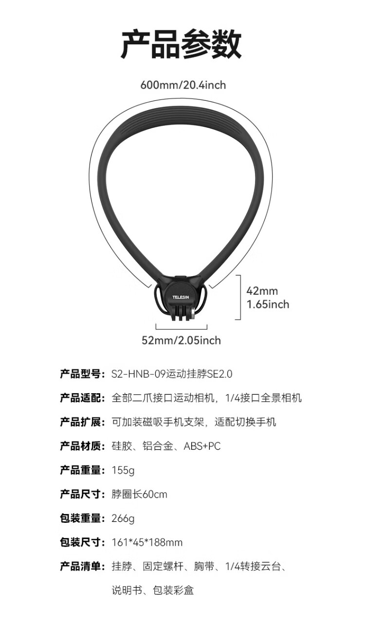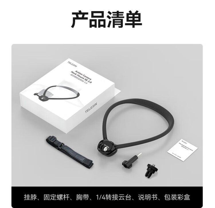 TELESIN (Taixun) action camera hanging neck bracket SE2.0 first-person shooting hanging neck adapting to DJI action6 5 4/acepro2/nano chest fixed bracket