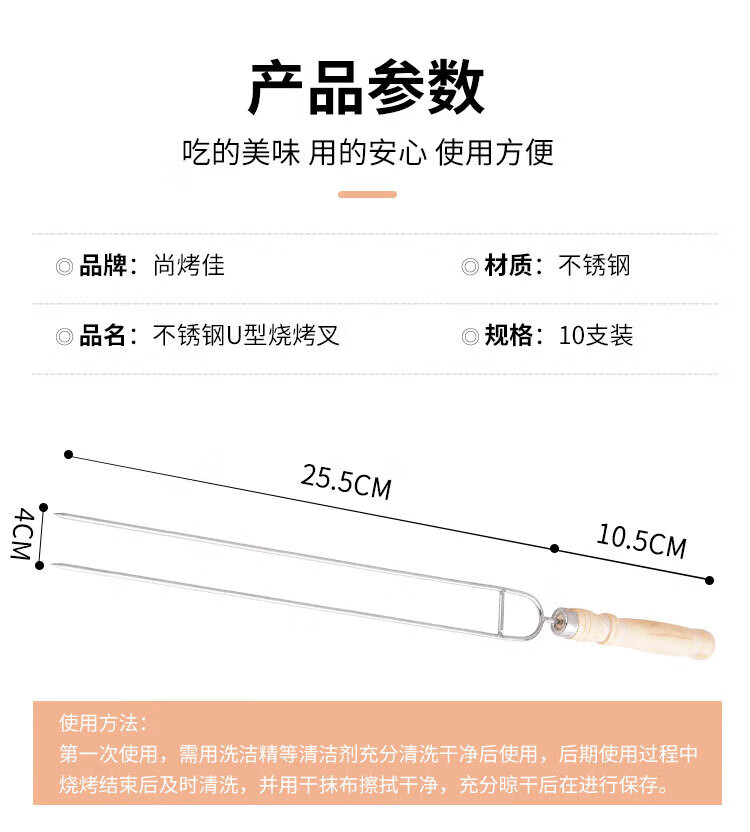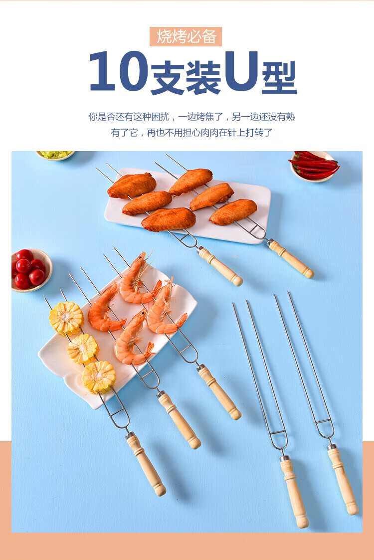 Suncojia stainless steel U-shaped barbecue skewers, barbecue forks, grilled chicken wing skewers, sausage forks, barbecue tools barbecue skewers