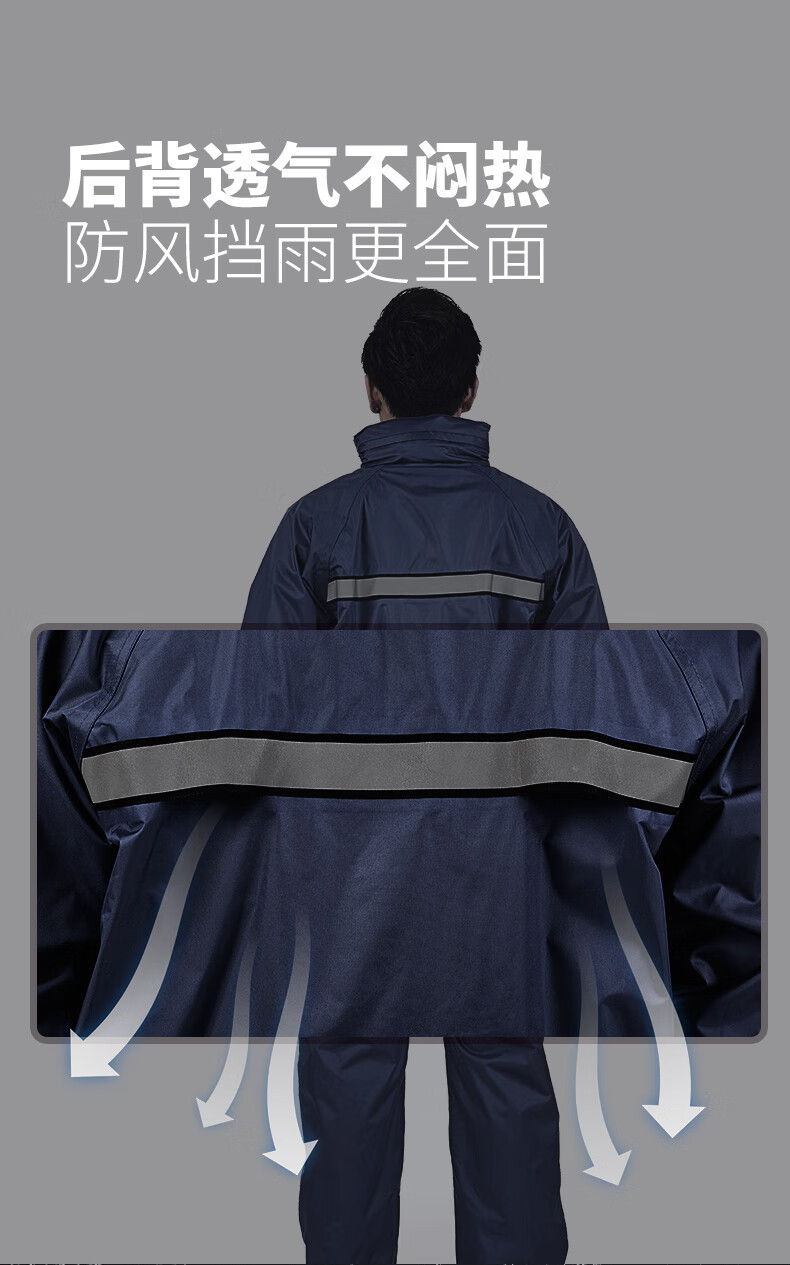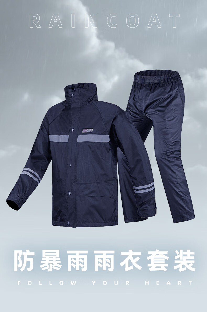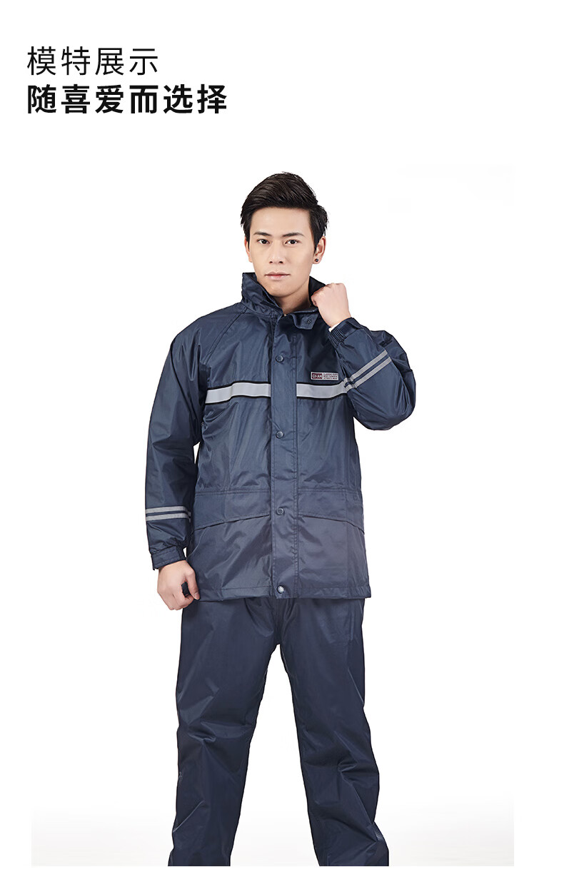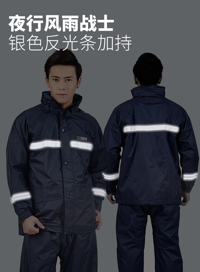 Riding rainstorm emergency rescue reflective strip raincoat and rain pants set Navy L