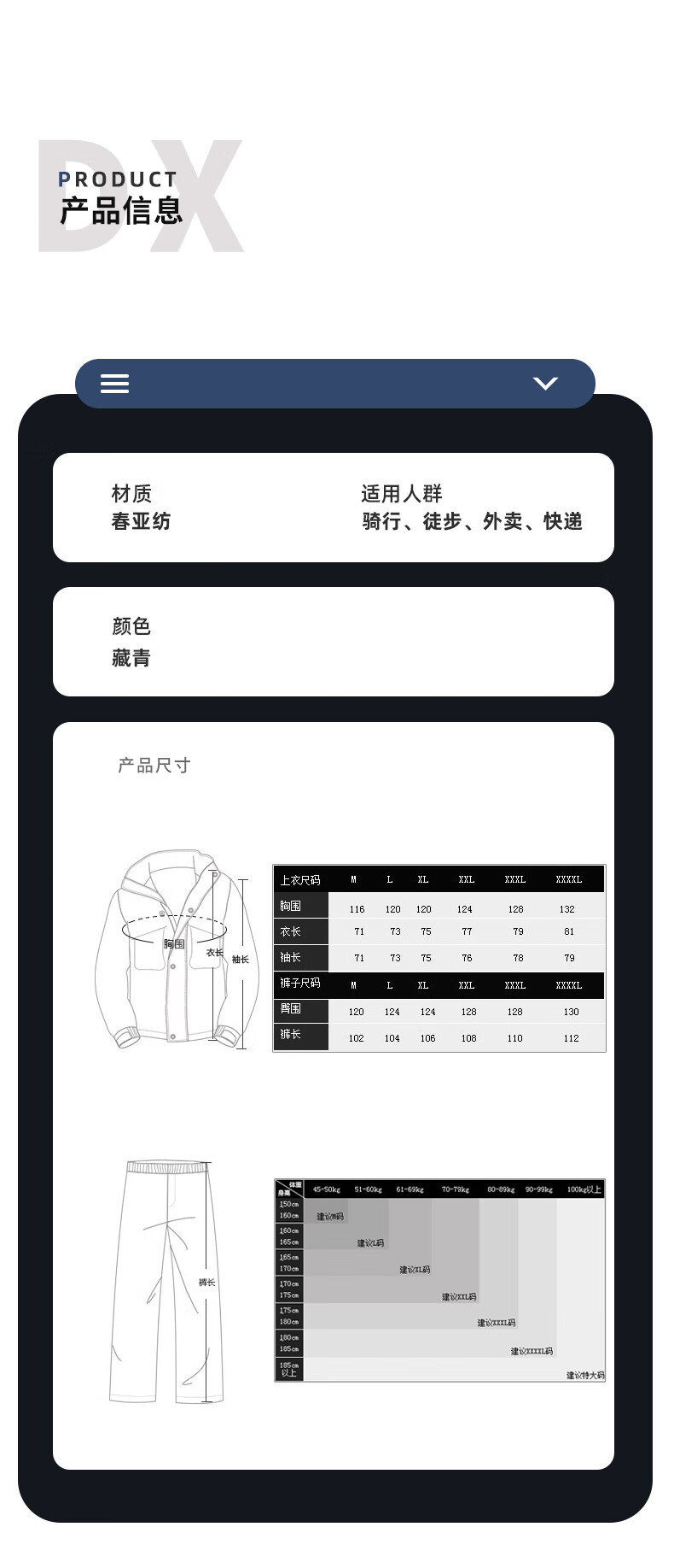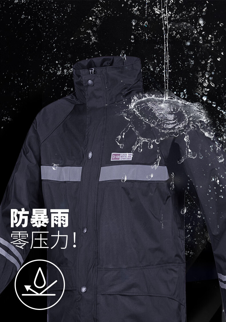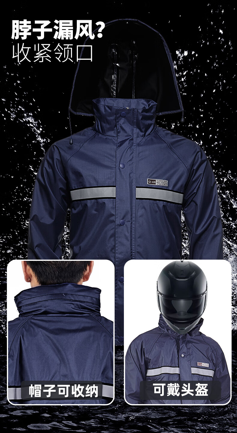 Riding rainstorm emergency rescue reflective strip raincoat and rain pants set Navy L