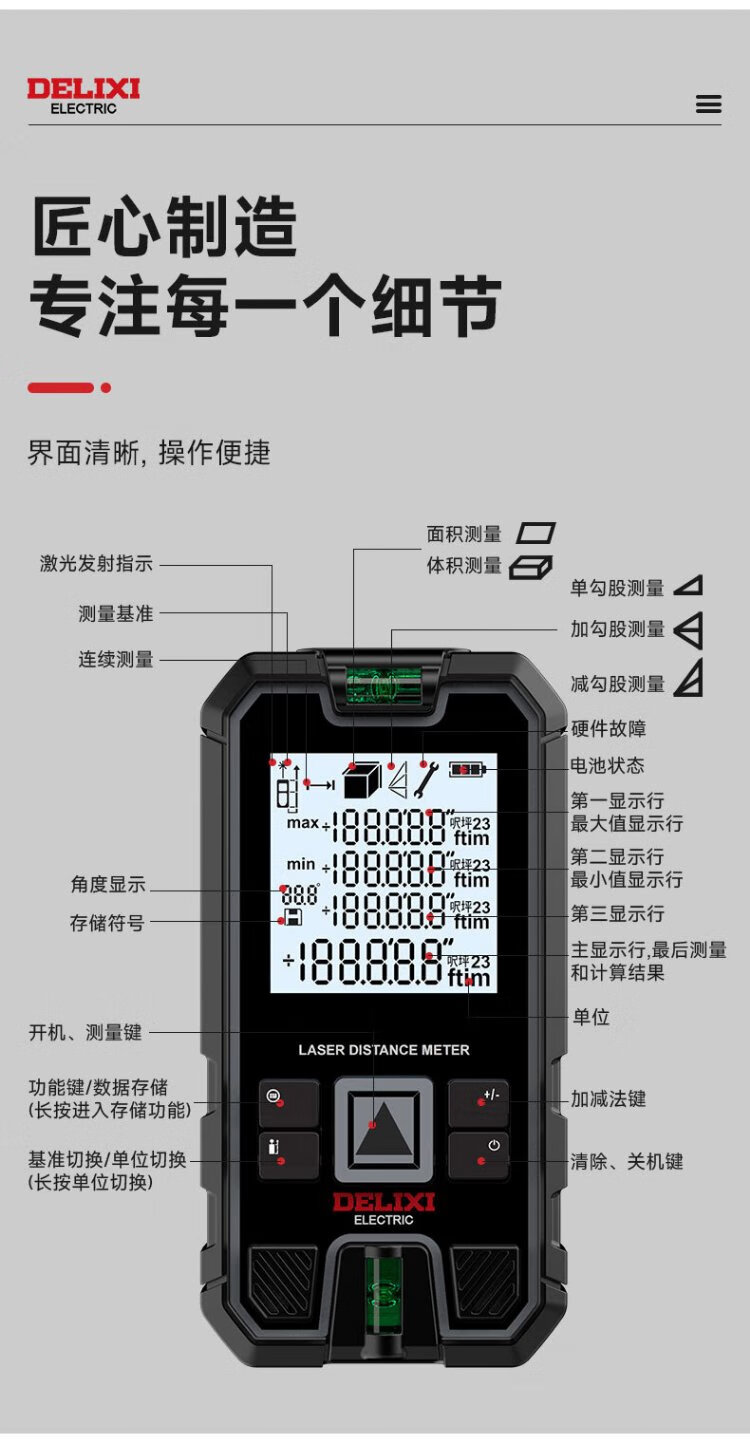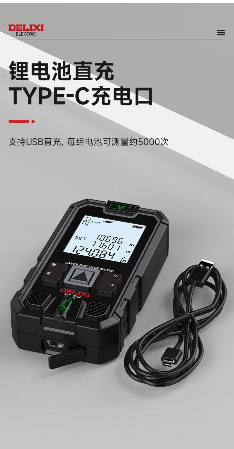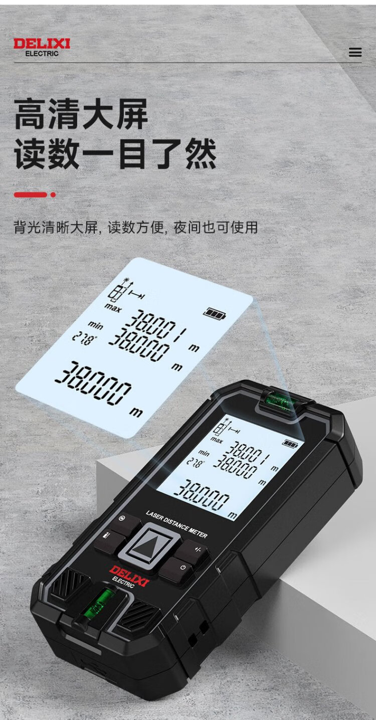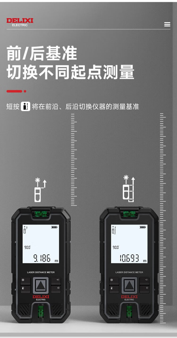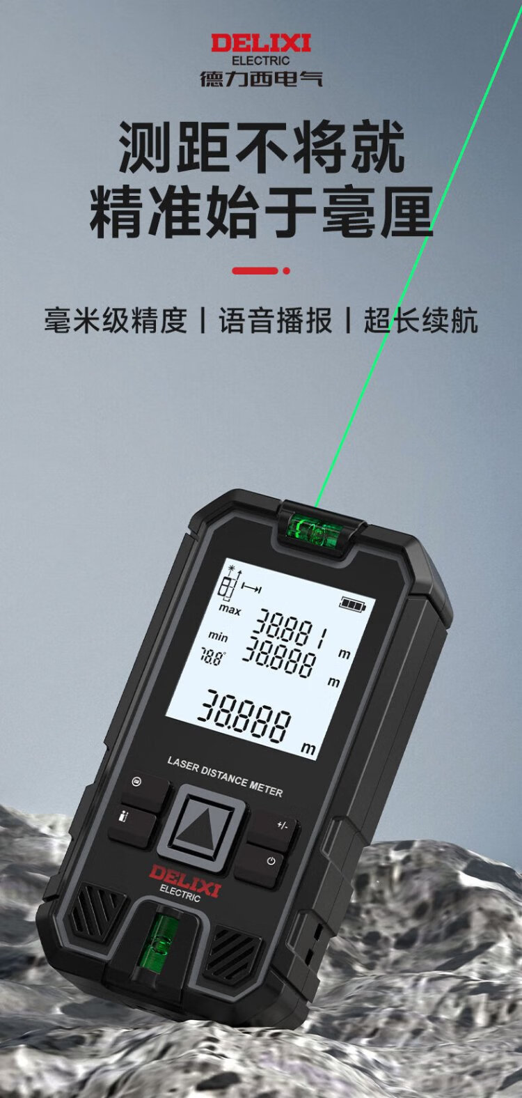 DELIXI ELECTRIC rangefinder green light laser ruler handheld millimeter high-precision electronic ruler household room measuring instrument lithium battery voice model 50m