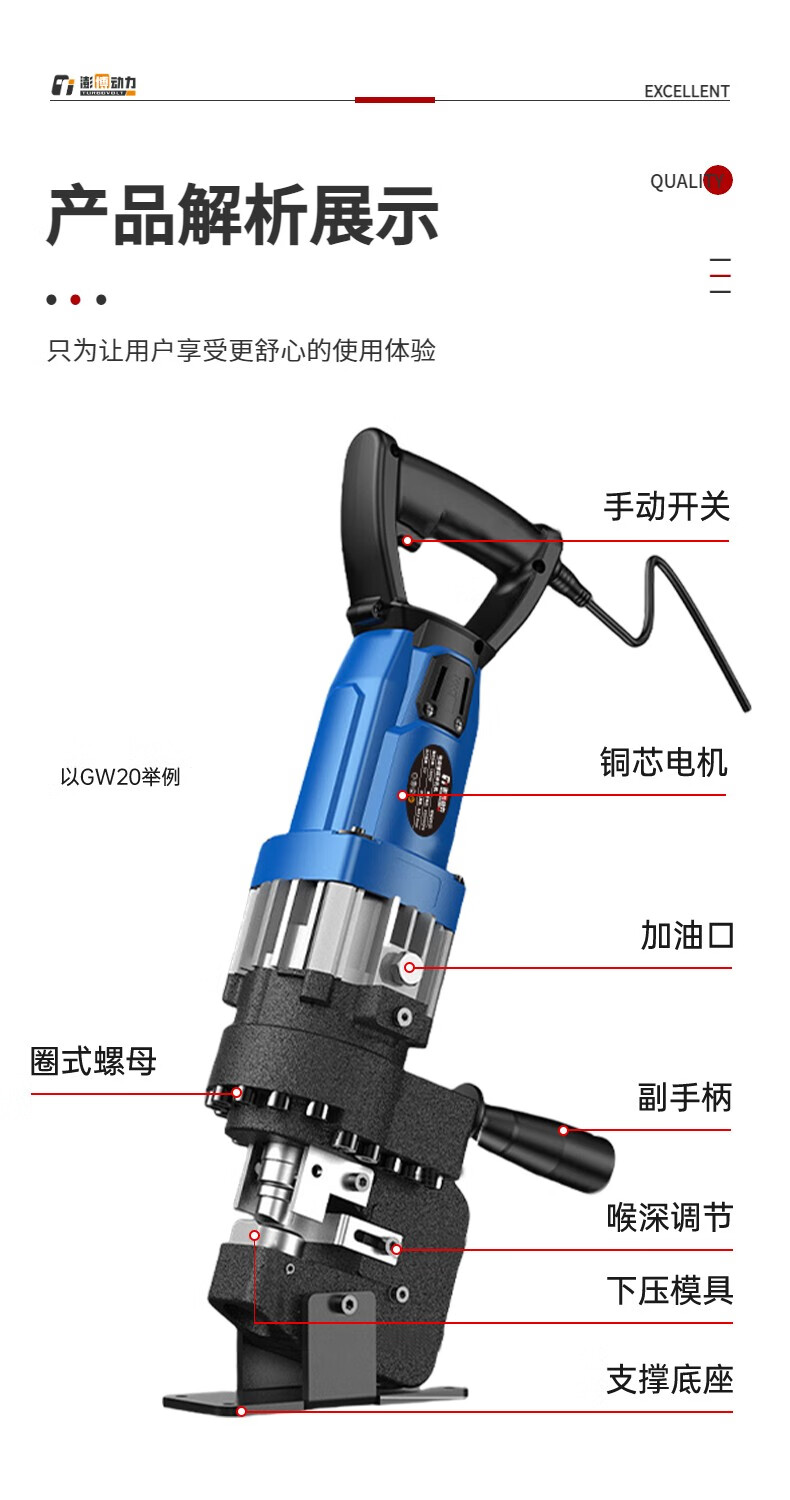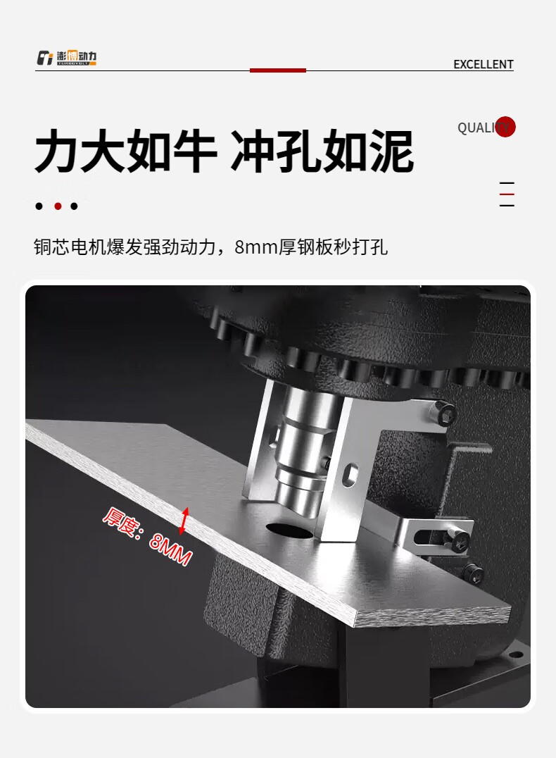 TURBOVOLT Electric Hydraulic Punching Machine Angle Iron Channel Steel Punch Portable Angle Steel Type + 5 Pairs of Molds