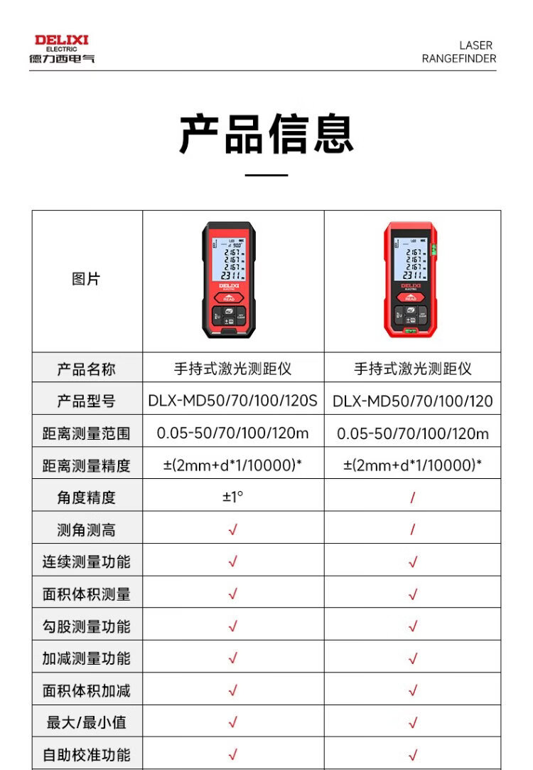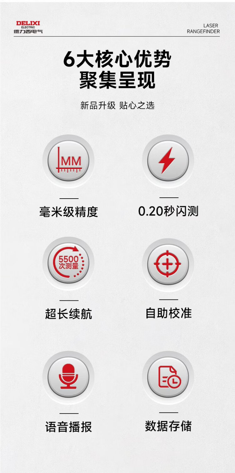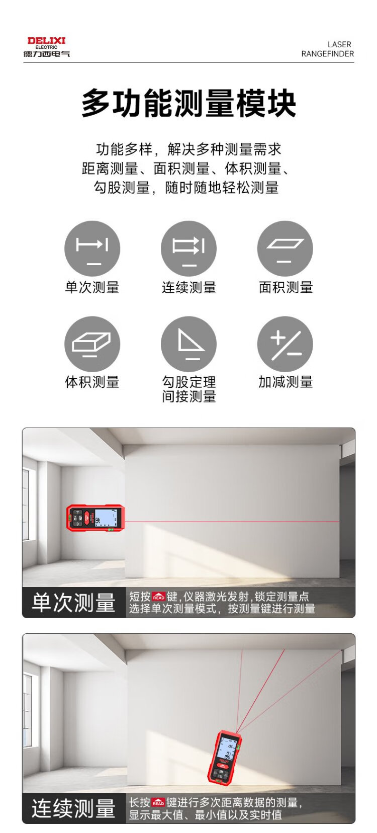 DELIXI ELECTRIC rangefinder infrared laser ruler handheld millimeter high-precision electronic ruler household room measuring instrument lithium battery voice 120m