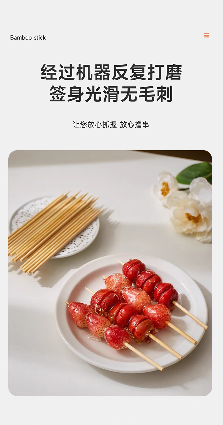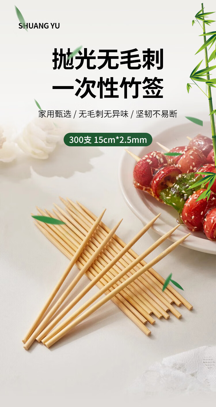 SHUANG YU candied haws bamboo skewers disposable small bamboo skewers 15cm barbecue skewers grilled sausage skewers hawthorn fruit skewers 300 pieces