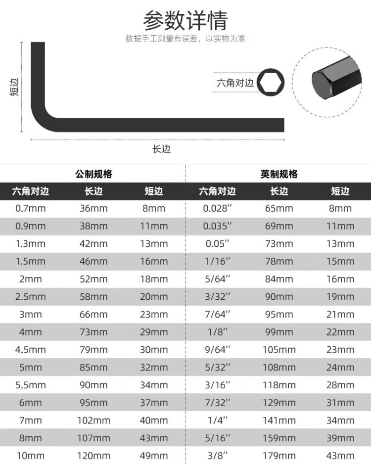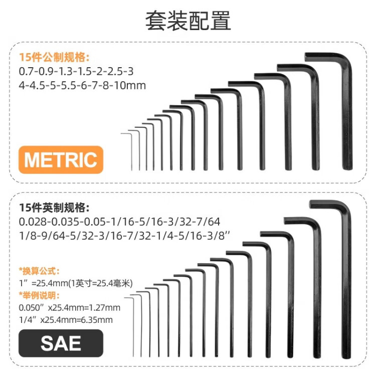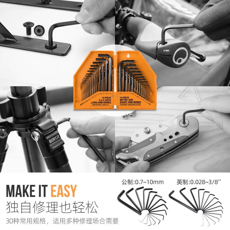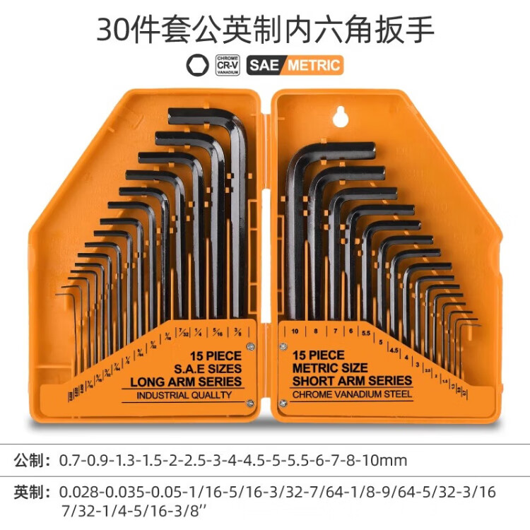 Ximen metric imperial hexagonal wrench set L-shaped hexagonal hexagonal wrench hardware tool set 30 pieces
