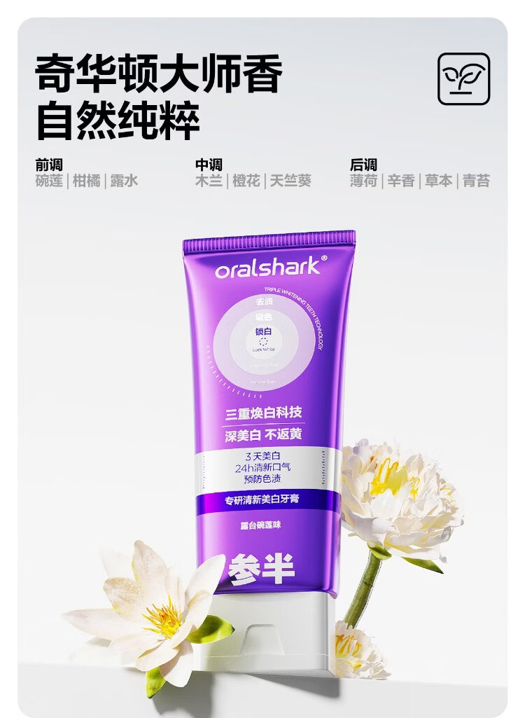 Hua Chenyu's same style, specializes in fresh whitening, small purple tube toothpaste, color repair, stain removal, breath whitening 300g