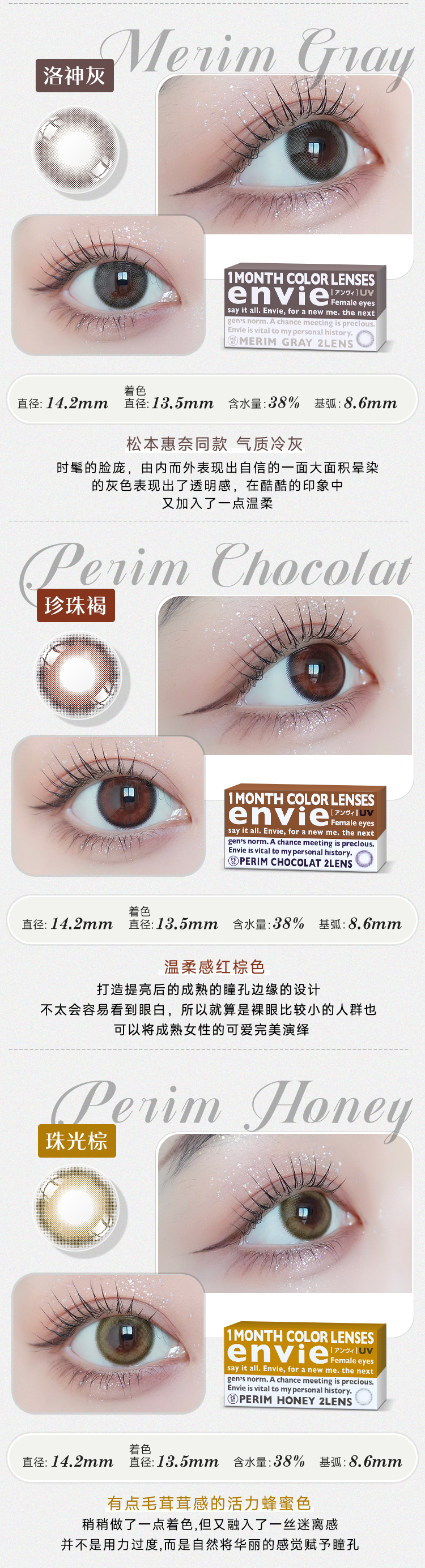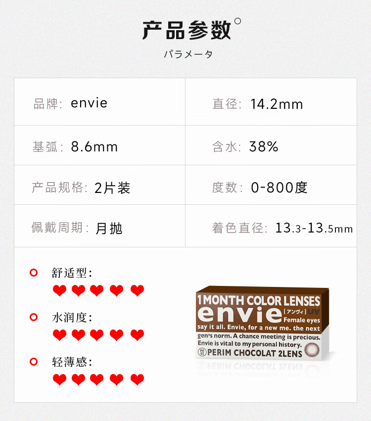 Envie monthly disposable color contact lenses, large and small diameter myopia colored contact lenses, 2 pieces, crescent black, 600 degrees