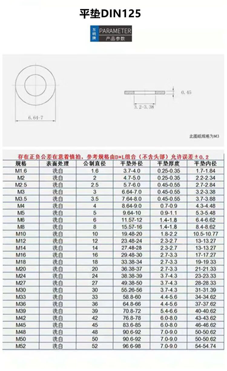 TONG Dongming 304 stainless steel flat washer DIN125 M3 (500 pieces/bag)