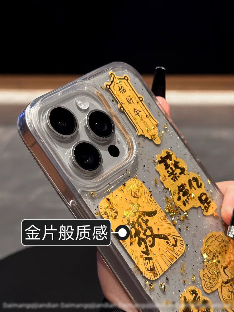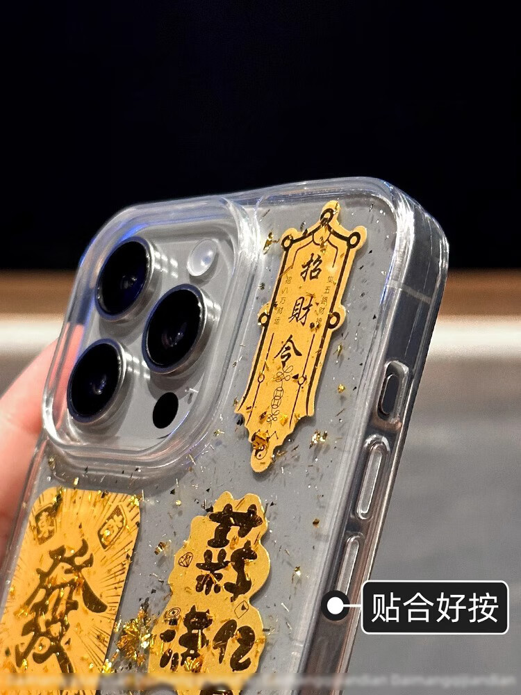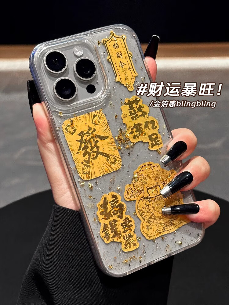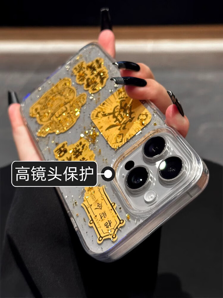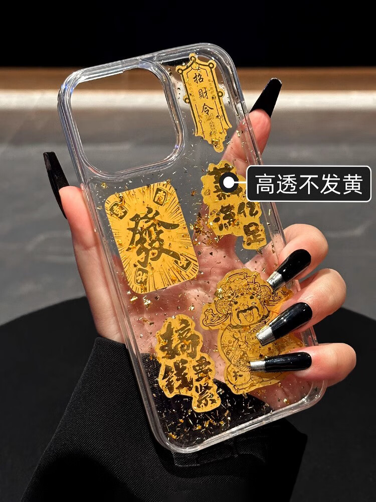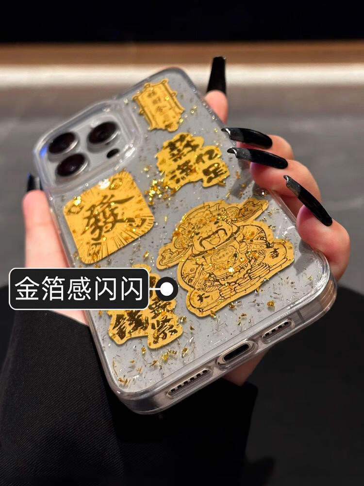 Zhiwei Guard Gold Foil God of Wealth Suitable for Apple 15promax mobile phone case iPhone15promax protective cover all-inclusive anti-fall silicone transparent creative high-end new year style