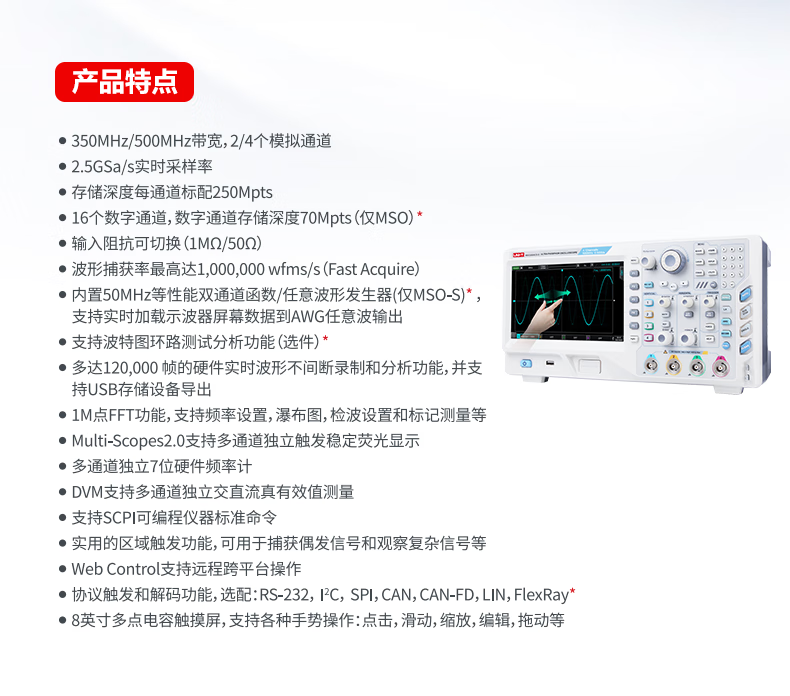 Unilever Industrial Products UPO3504CS digital fluorescence oscilloscope high-precision four-channel 500M bandwidth oscilloscope