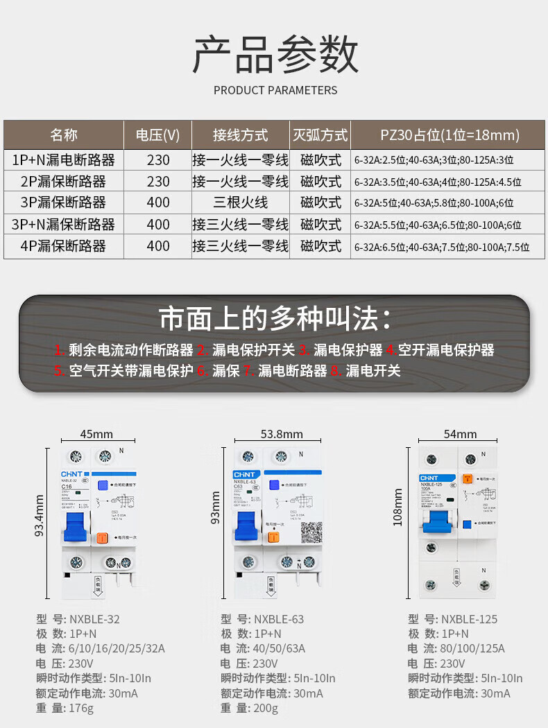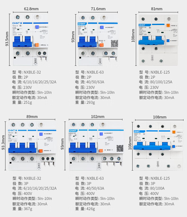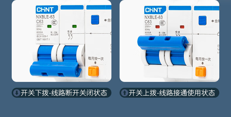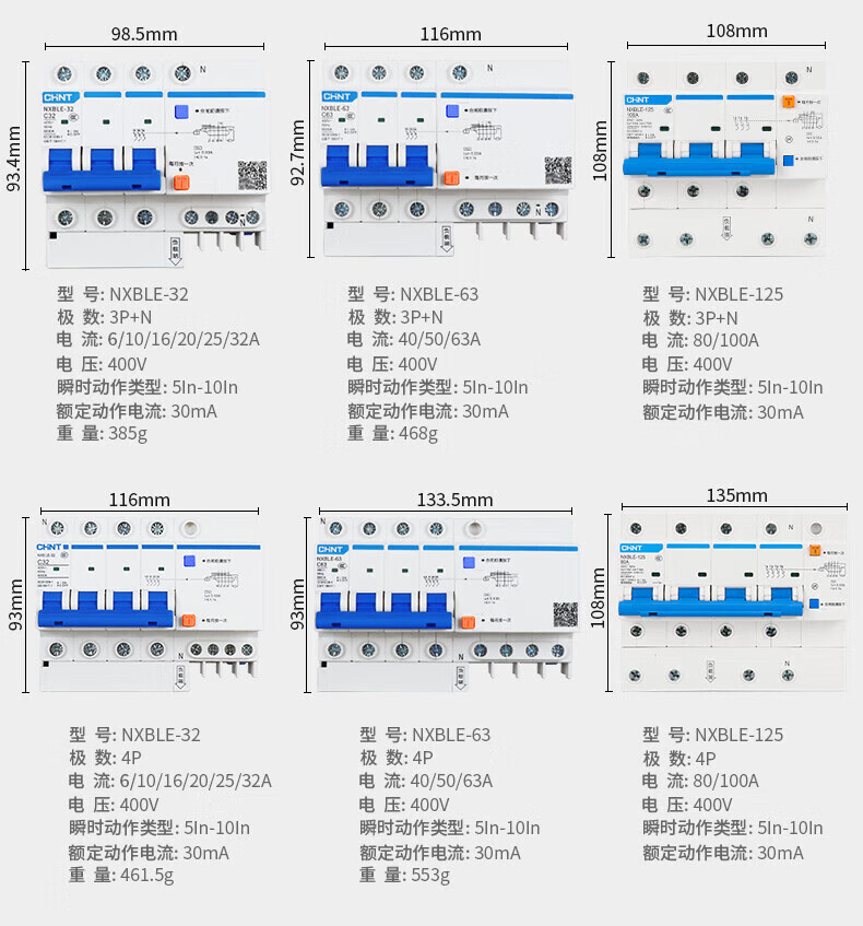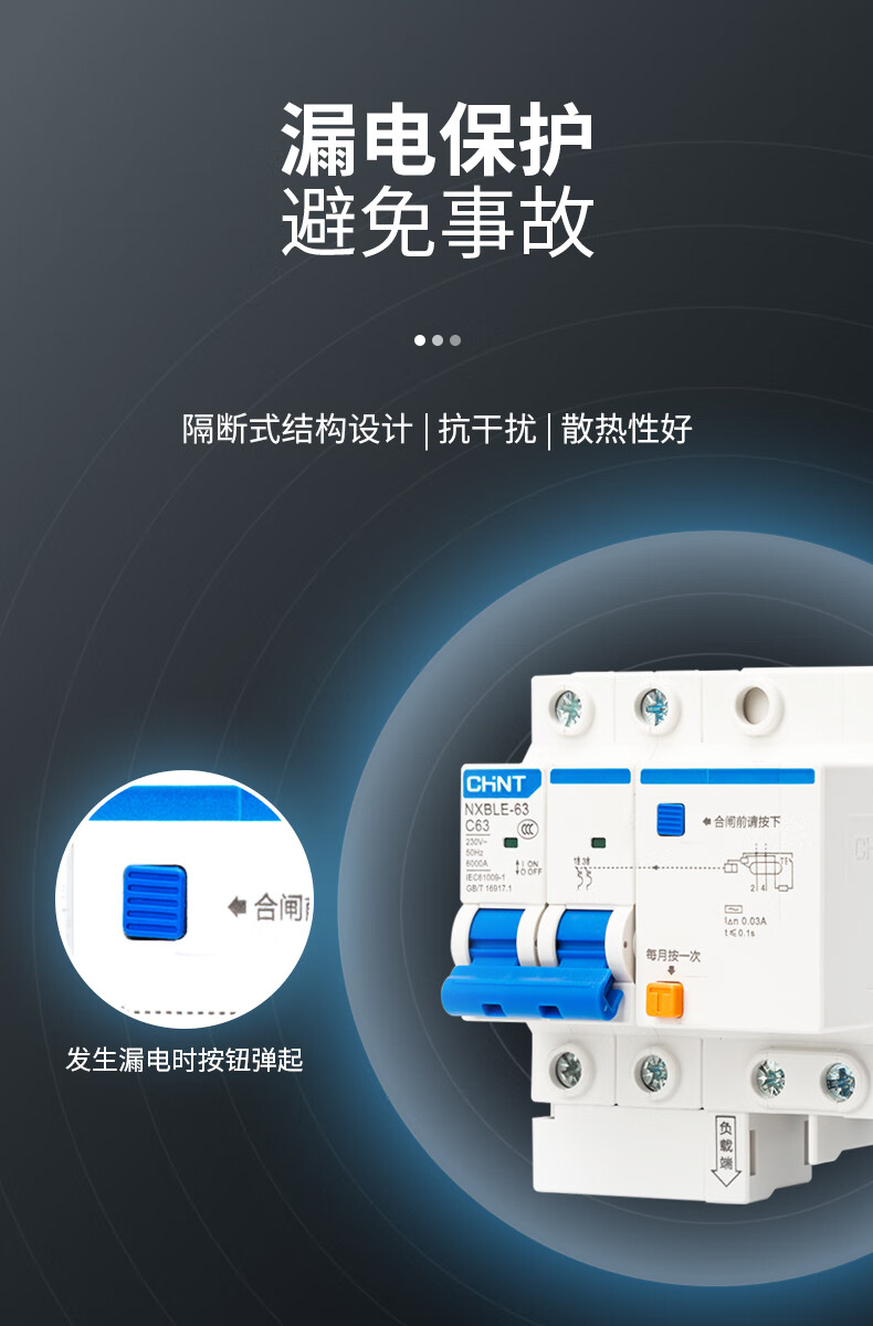 Chint (CHNT) leakage protector NXBLE-125 2P C100 large current two-phase 100A current 220V air-opening with leakage protection for home use
