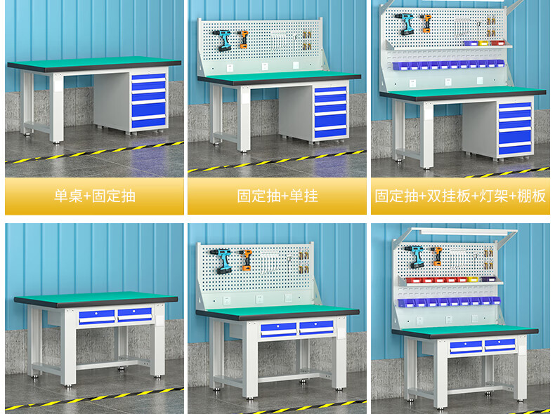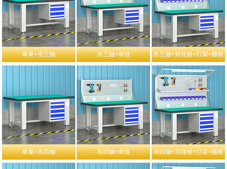 Baigang Heavy Duty Workbench Anti-static Maintenance Table Factory Workshop Fitter Operation Table Assembly Line Packing Table Horizontal Three Drawers + Double Hanging Plate + Lamp Stand + Shed Plate 2100*750*800mm