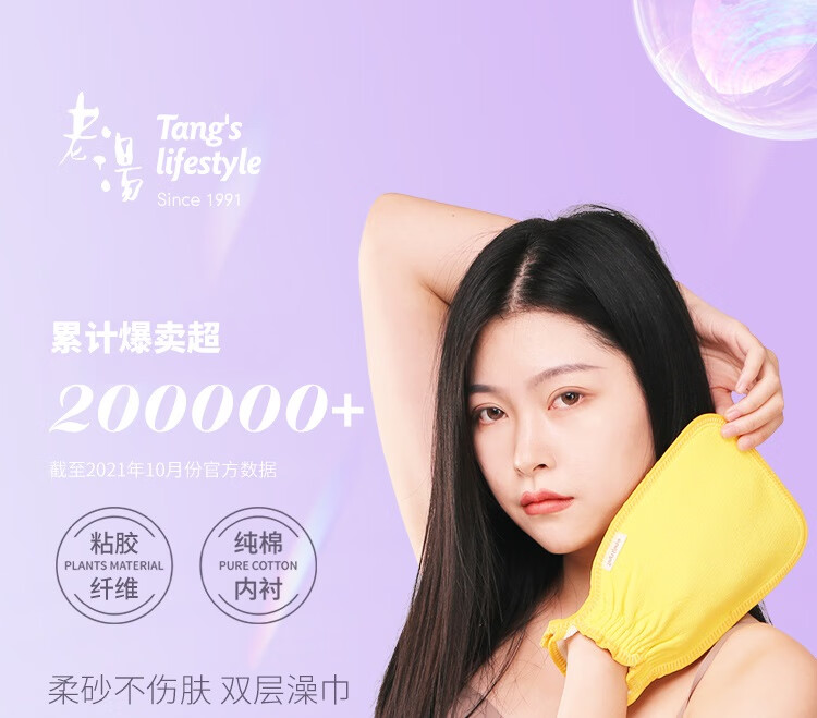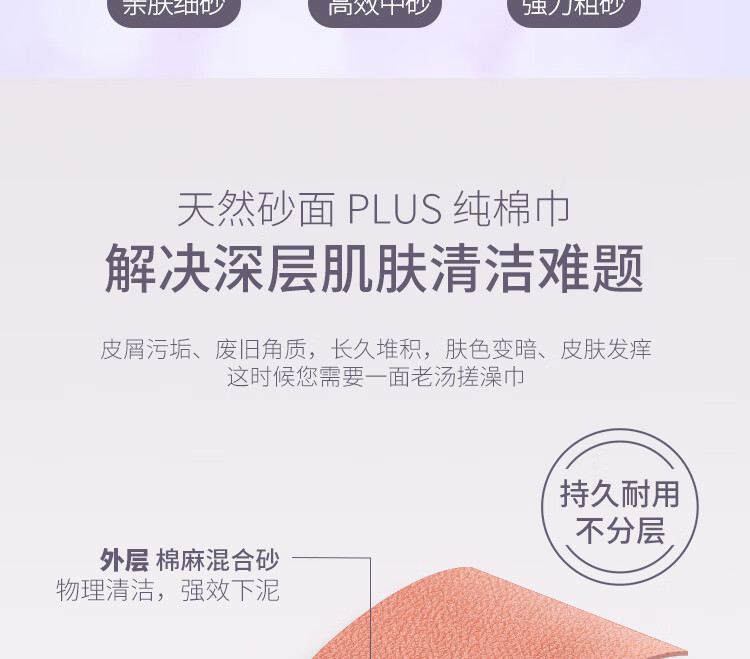 Laotang bath towel, powerful mud rub without hurting the skin, 7A antibacterial - fine medium double sand purple