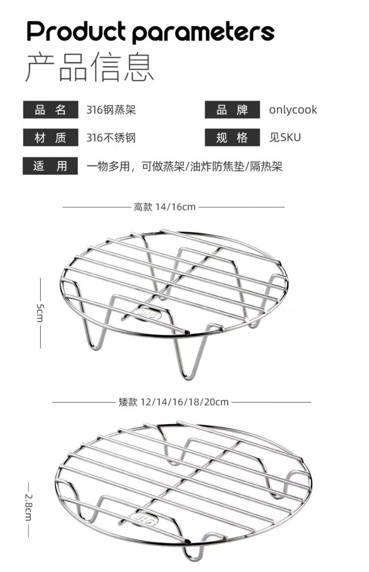 Onlycook316 stainless steel household steamed bun steaming vegetable grate rice cooker water-proof steaming sheet-316 steaming rack high feet 14cm