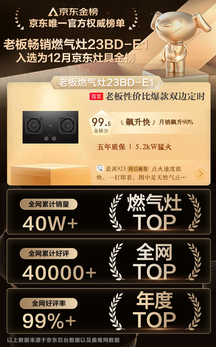 Robam bilateral timing small size JZT-23BD-E1 high power 5.2kW gas stove natural gas strong fire stove with hood L1mini