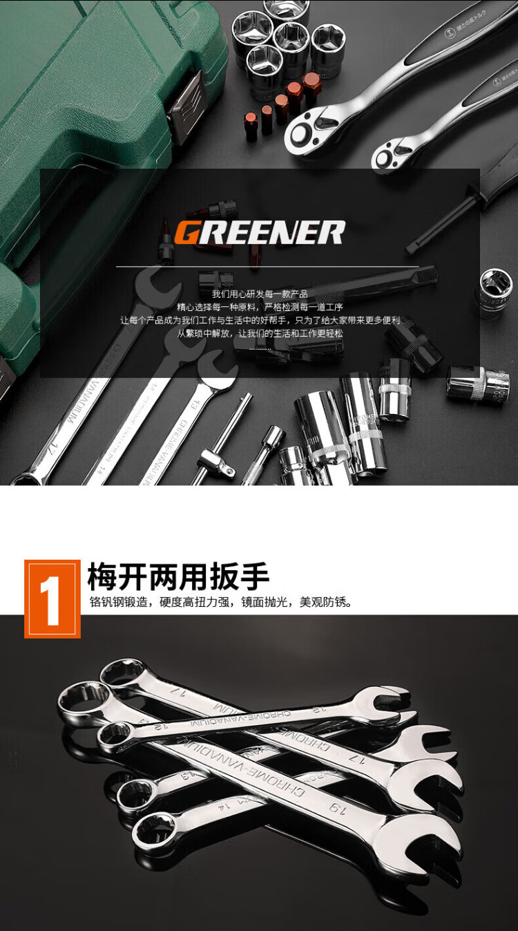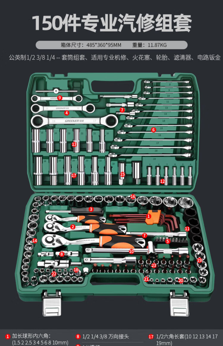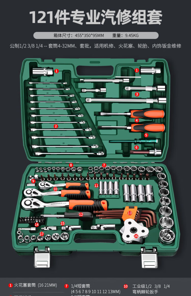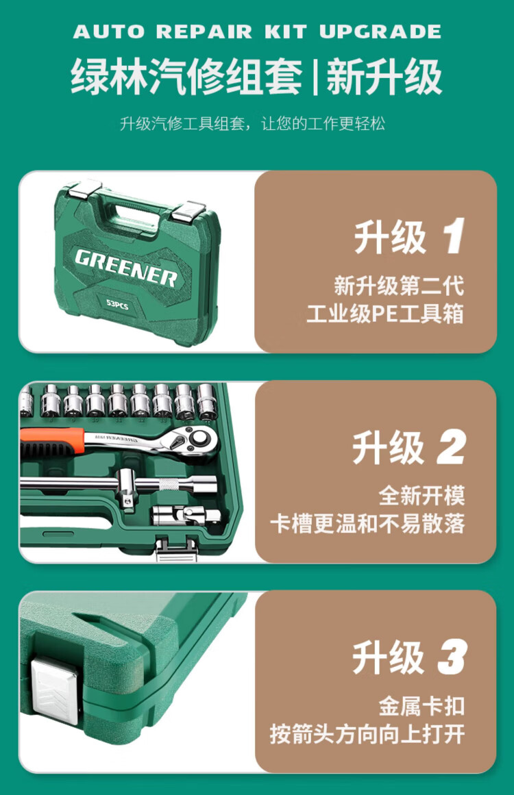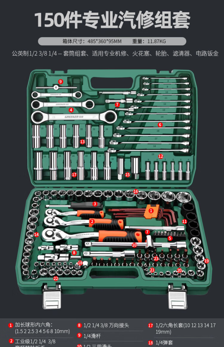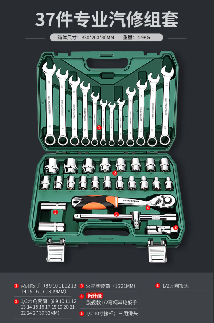 Green Forest Professional Auto Repair Tool Set 54-piece Home Auto Repair Tool Box Ratchet Quick Wrench Socket Complete Set