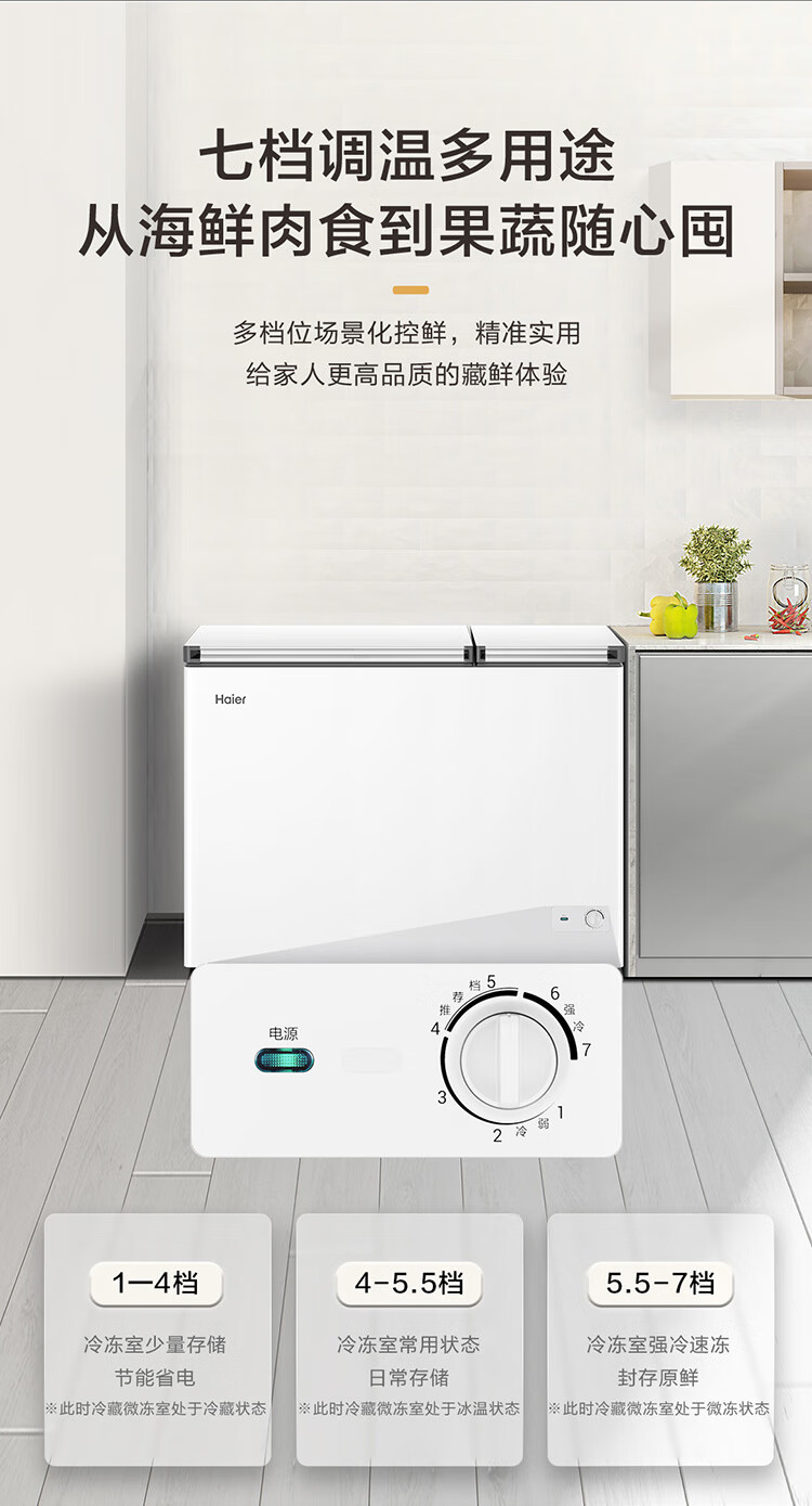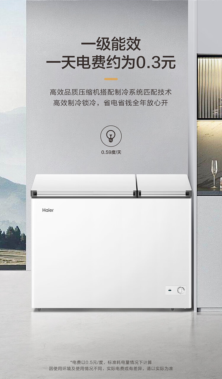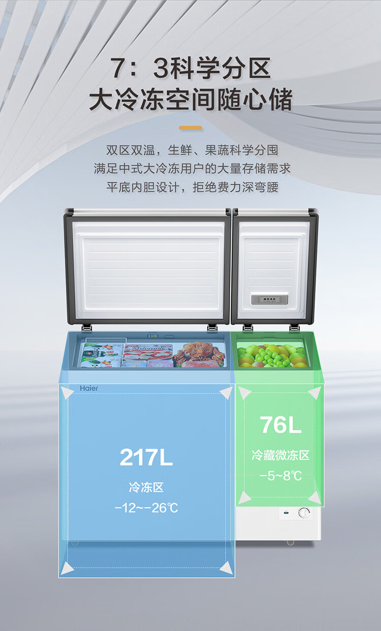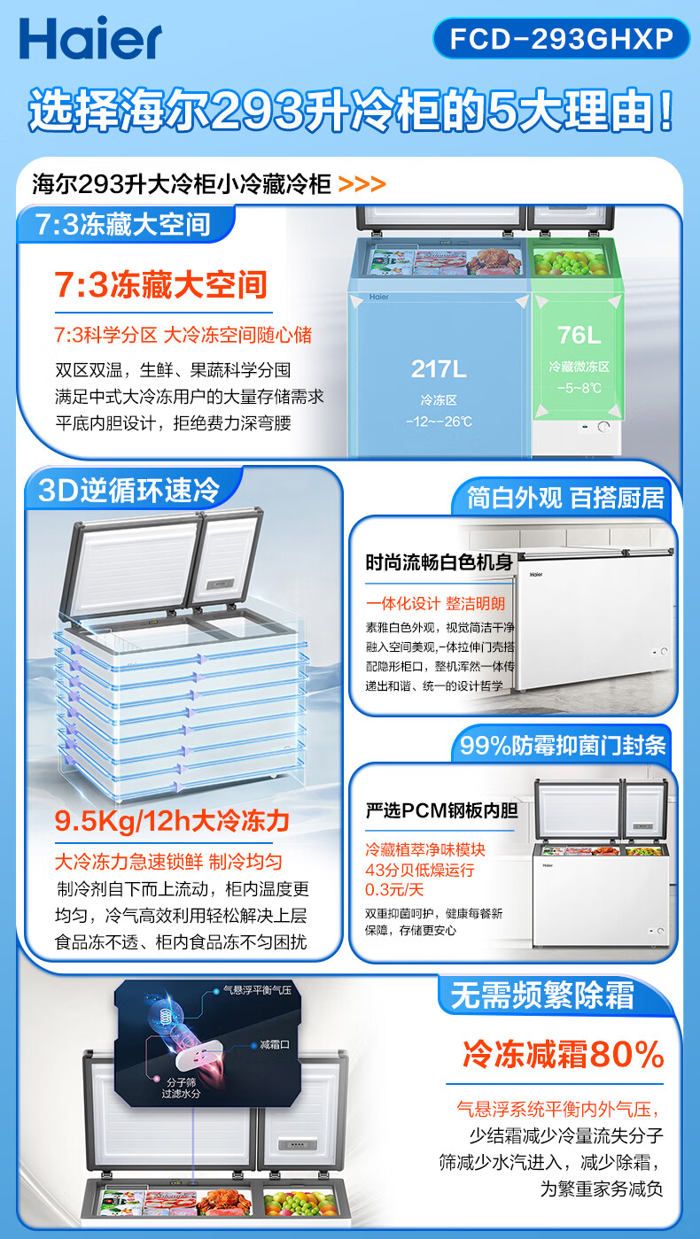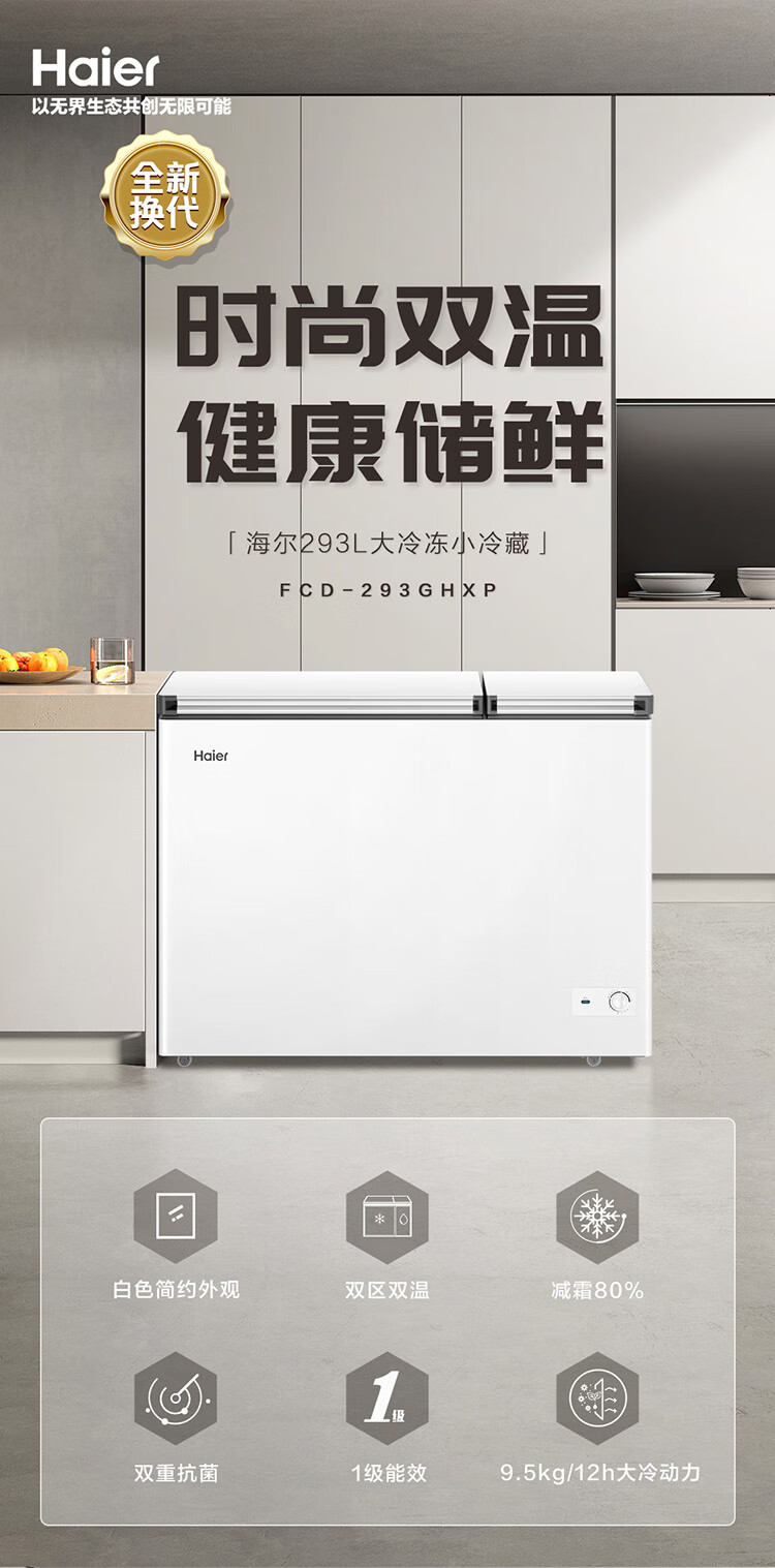 Haier 293 liter dual-temperature household freezer, dual-purpose refrigeration and freezing, fresh-keeping, large-capacity double box, no need for frequent defrosting, within 300 liters FCD-293GHXP national subsidy