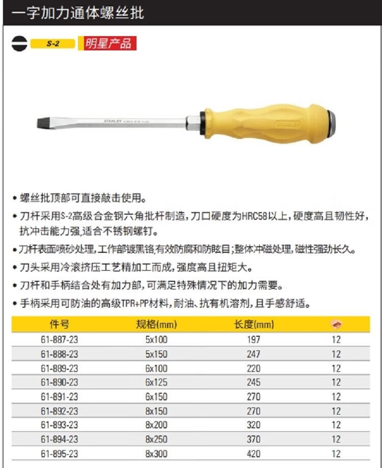 Stanley (STANLEY) one-word force-through screwdriver that can be tapped through the body 8x300mm 61-895-23