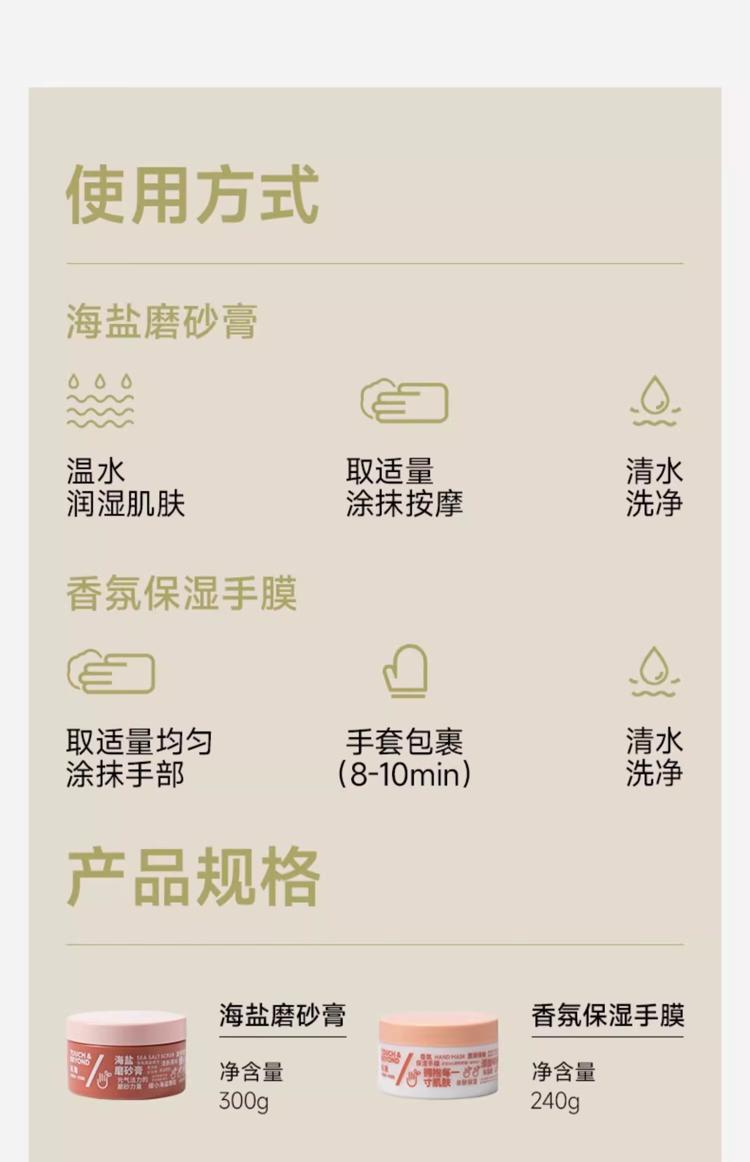 Tuoqu Hand Care Mask Set (Hand Scrub 300g + Moisturizing Mask 240g) Moisturizing and Exfoliating