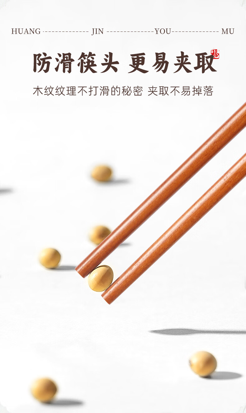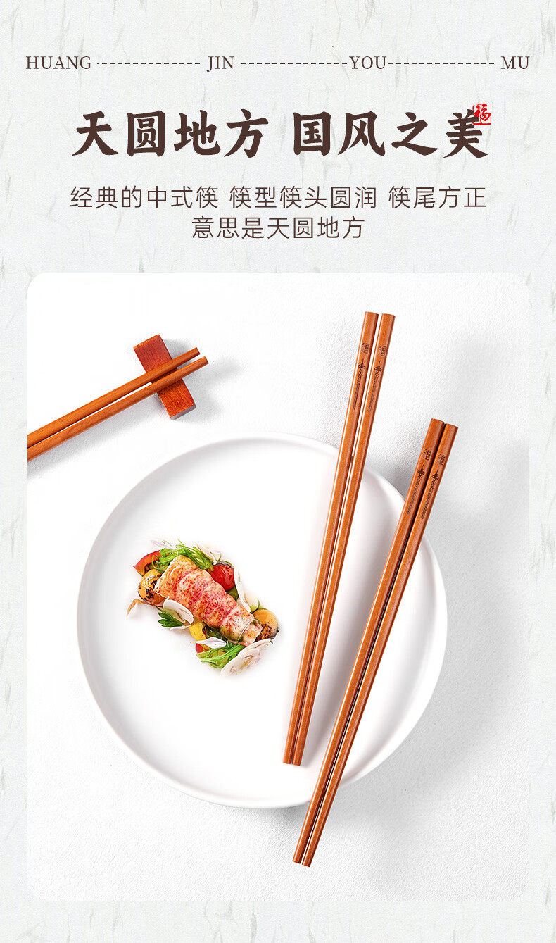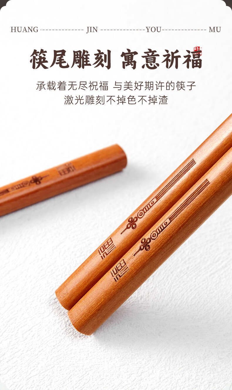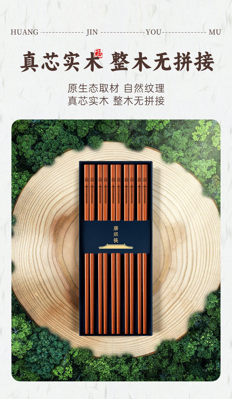 Tang Zong Chopsticks Gold Teak Chopsticks 10 Pairs - Kefu Natural Household Solid Wood Tableware Not Easily Mildew Gift Box