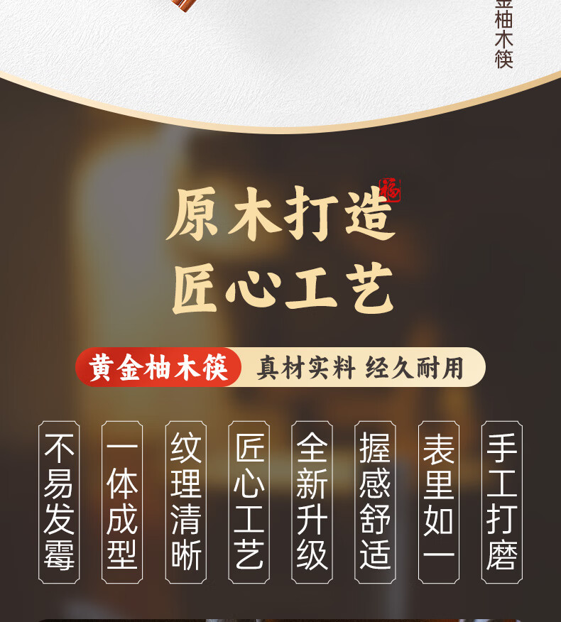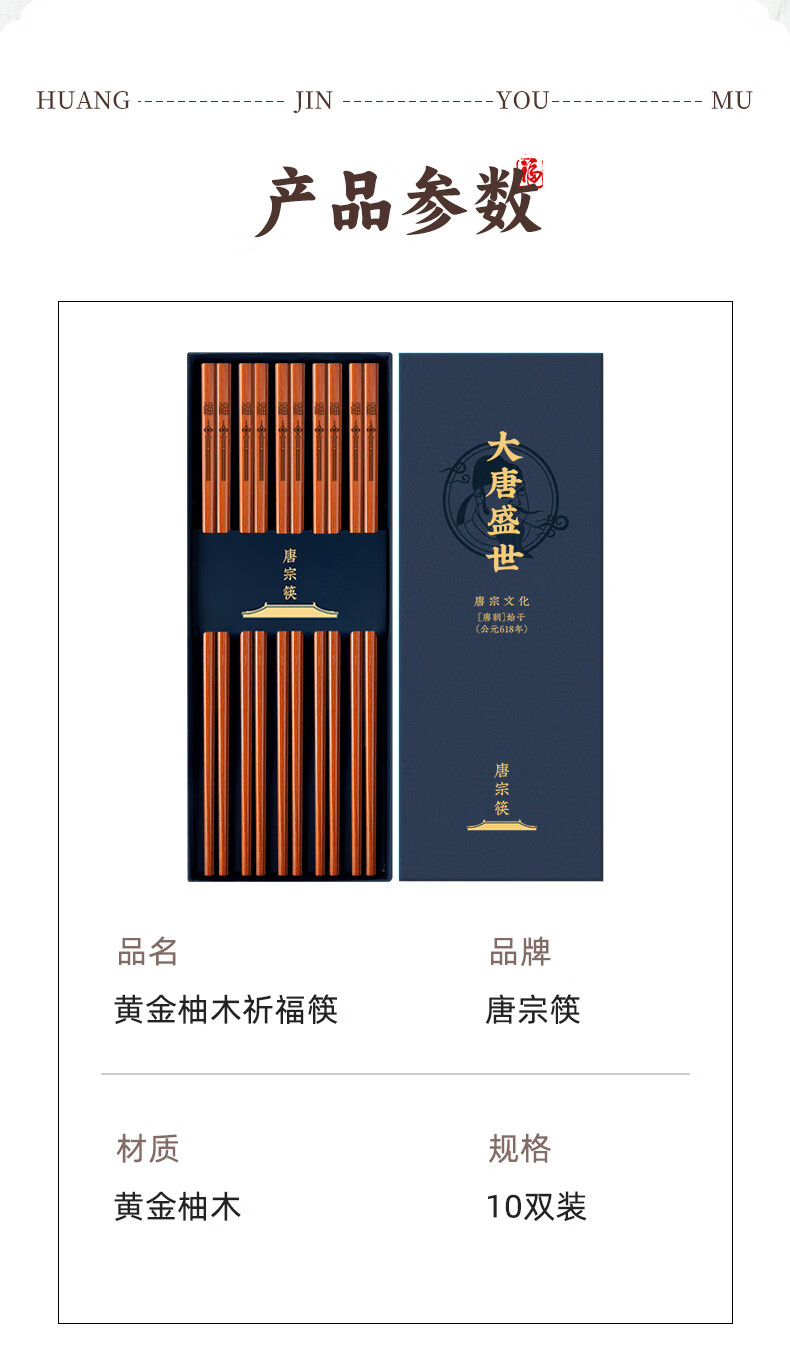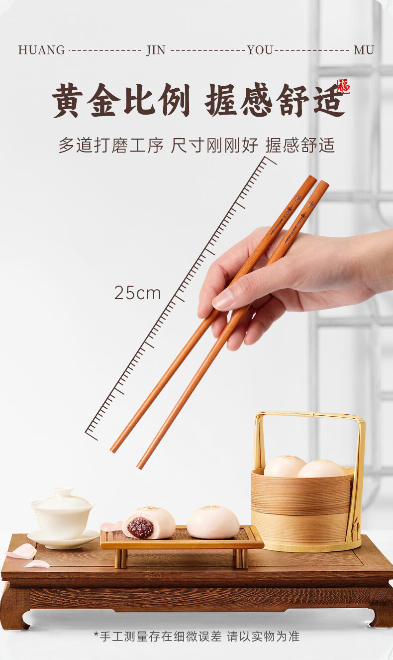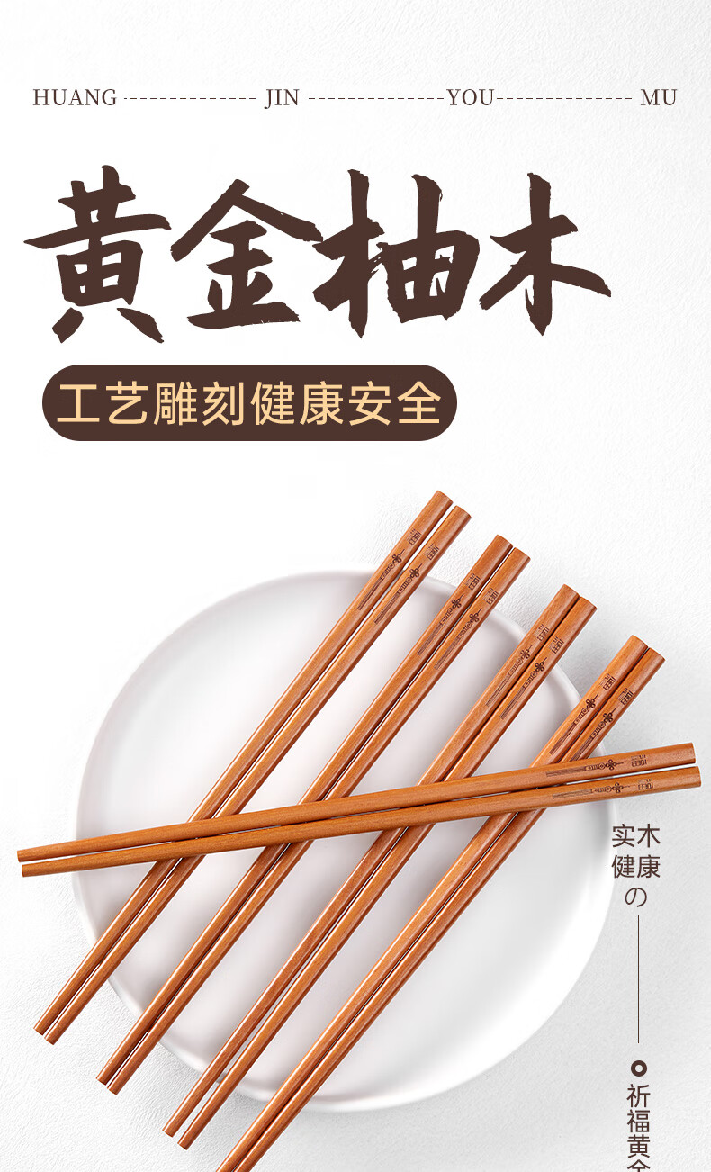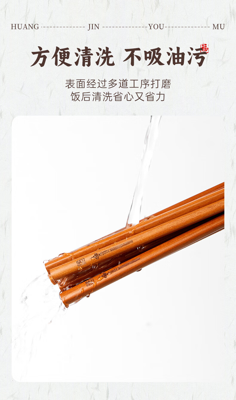 Tang Zong Chopsticks Gold Teak Chopsticks 10 Pairs - Kefu Natural Household Solid Wood Tableware Not Easily Mildew Gift Box