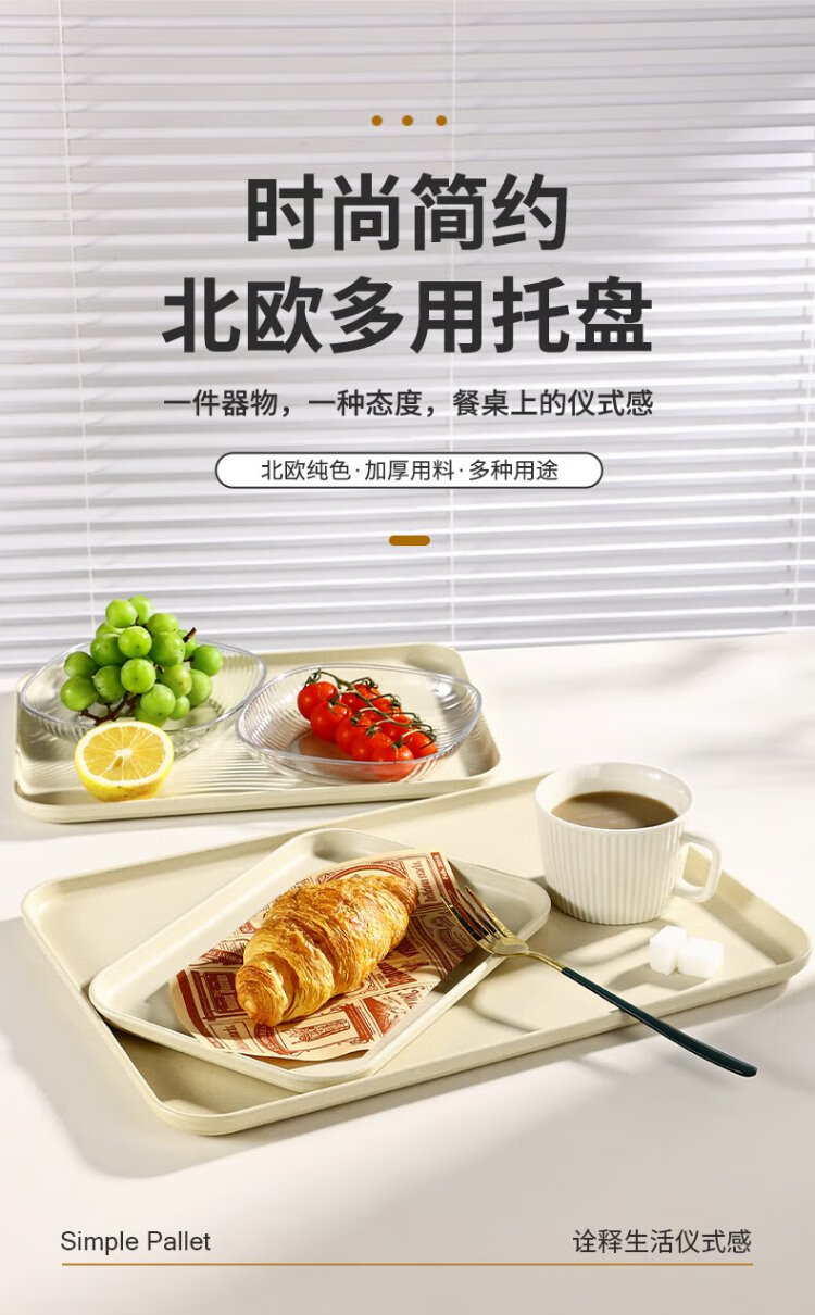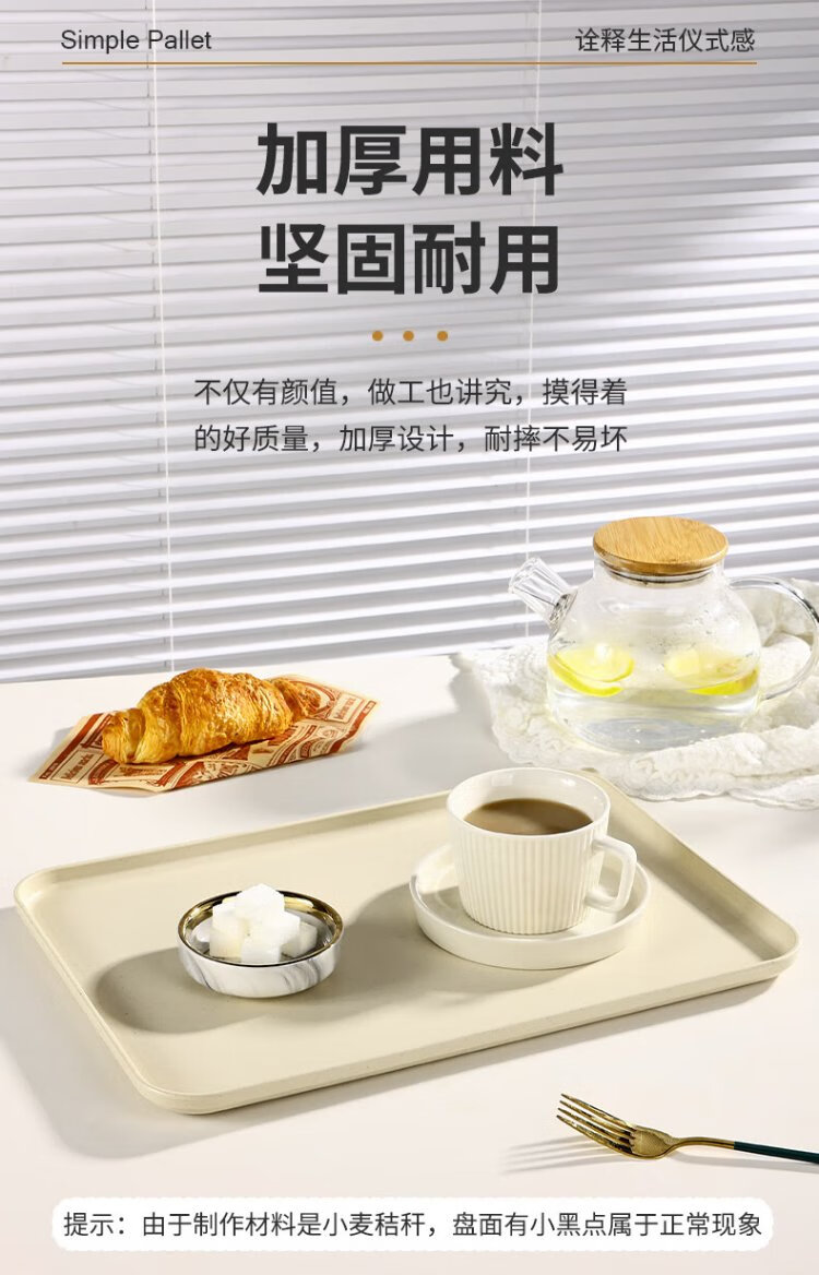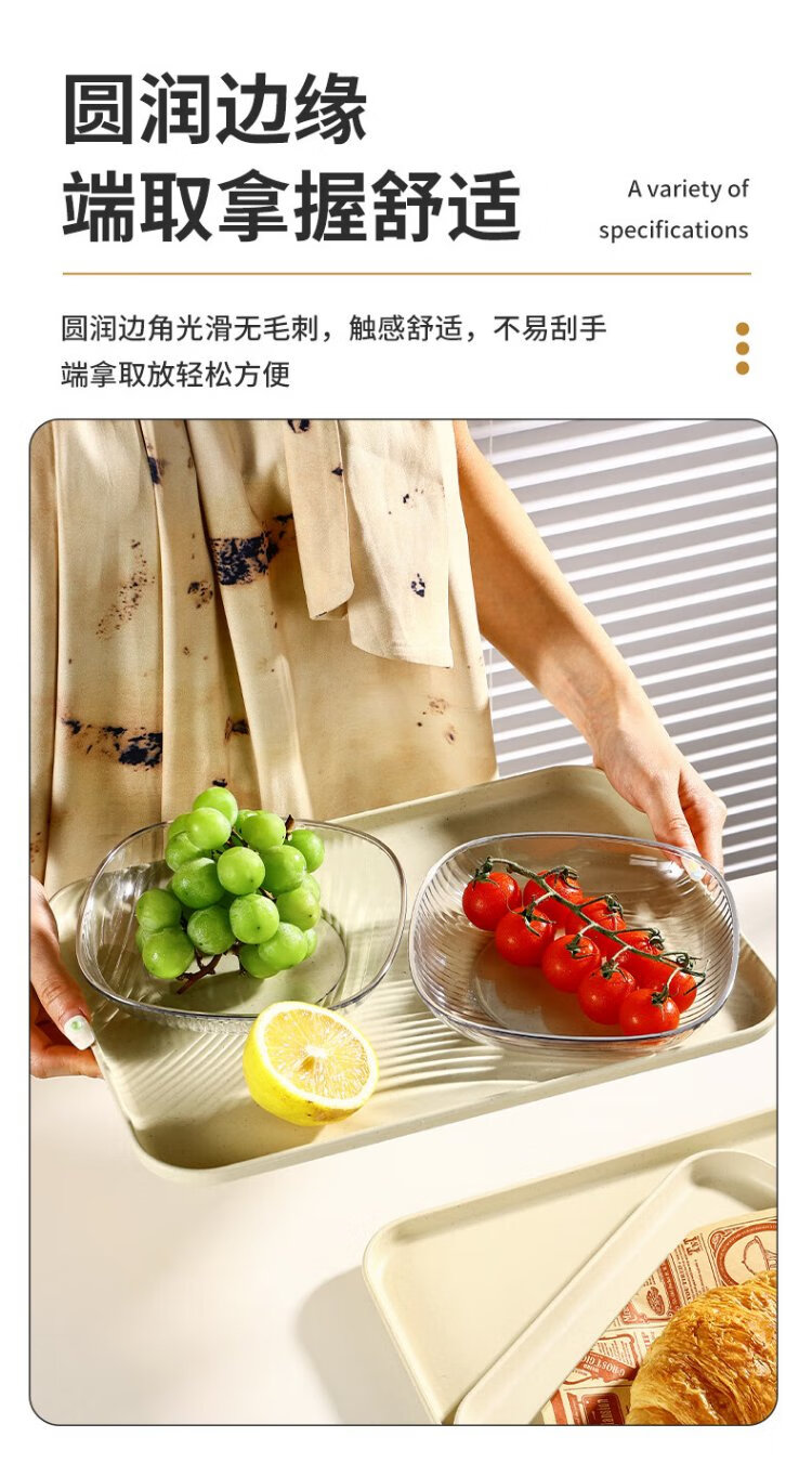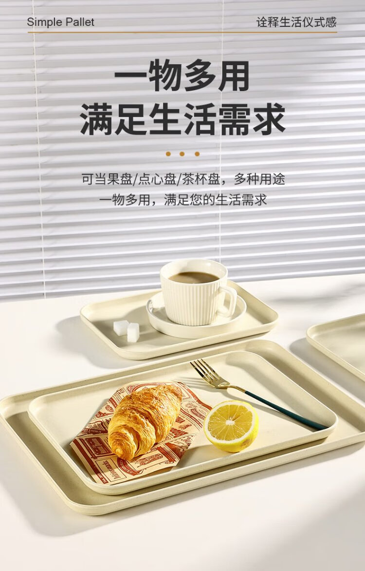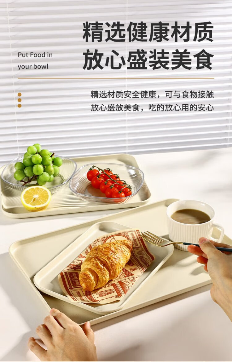 Caizhi (CAIZHI) rectangular tray tea tray household fruit tray breakfast tray storage tray living room snack tray medium beige CZ6753