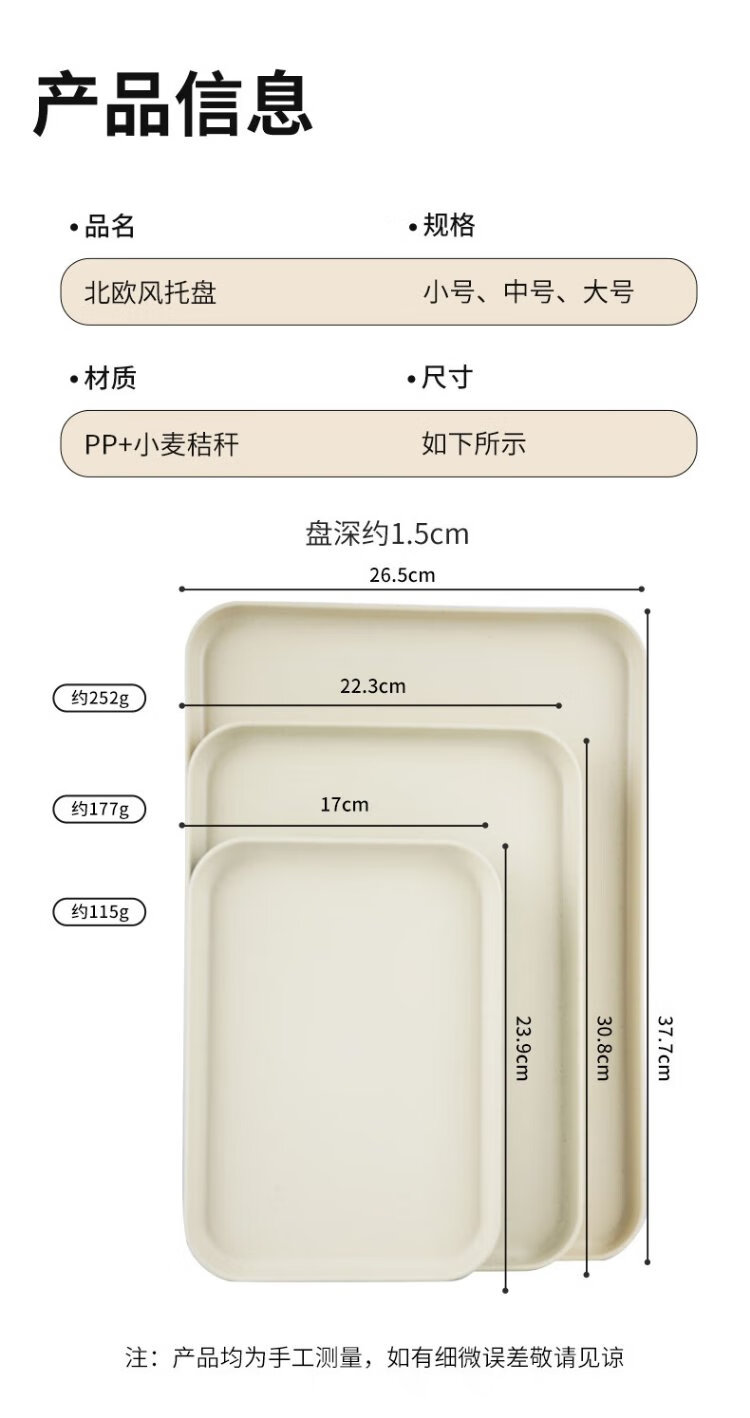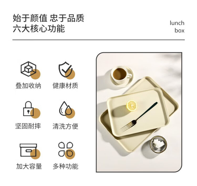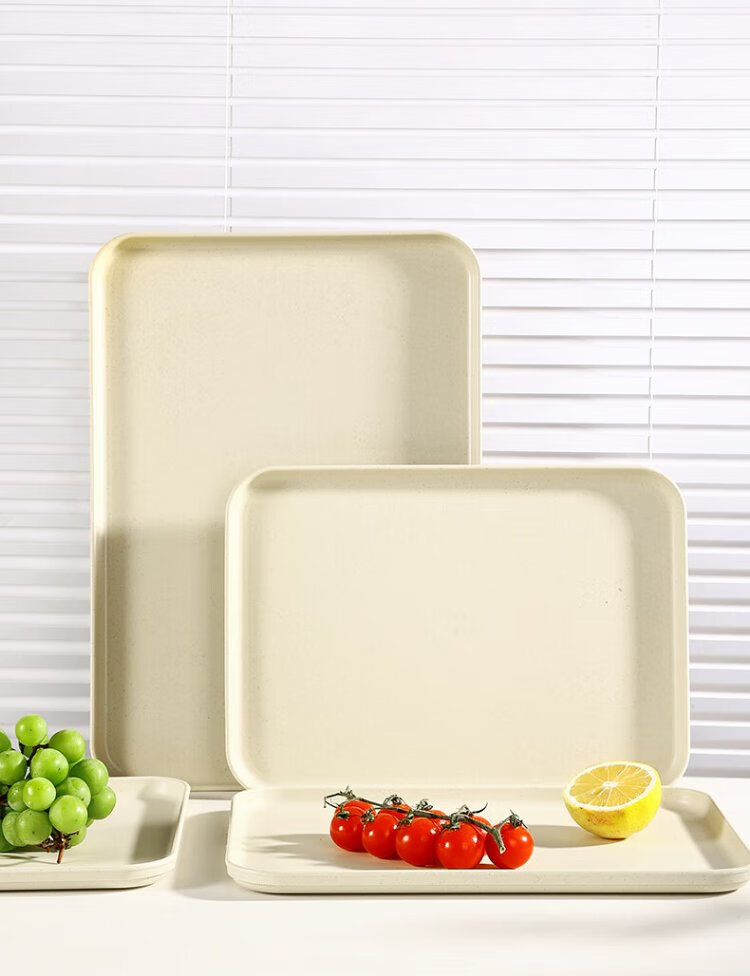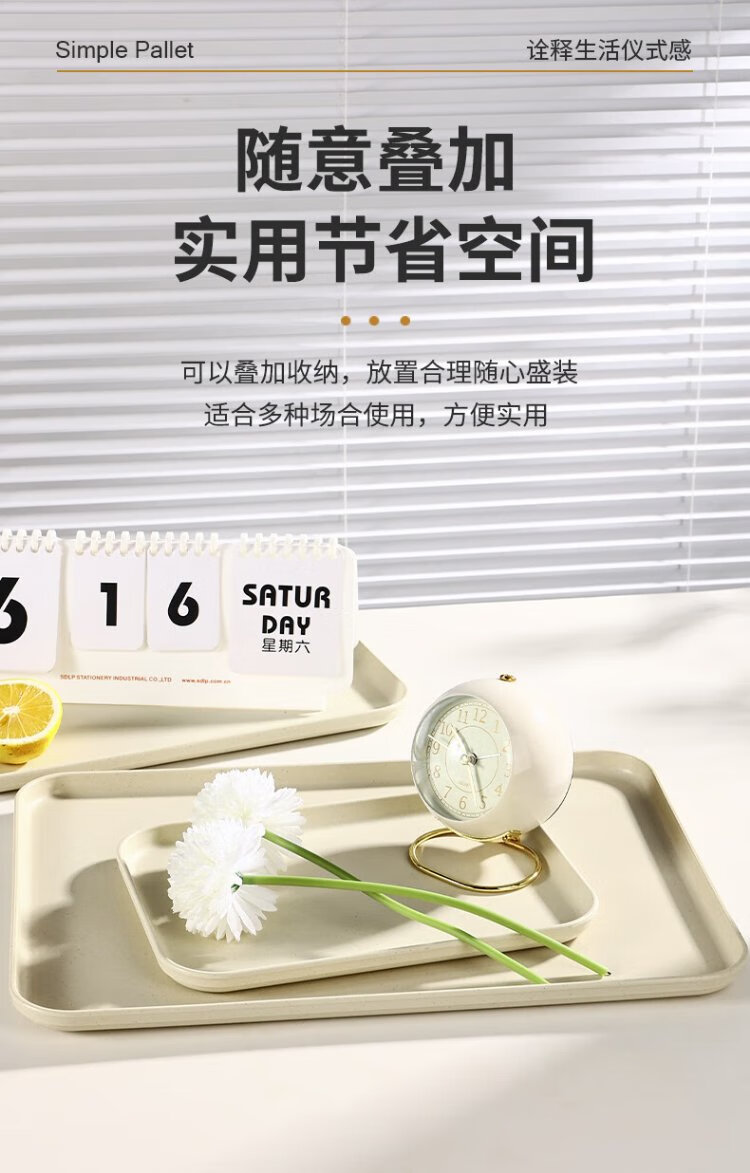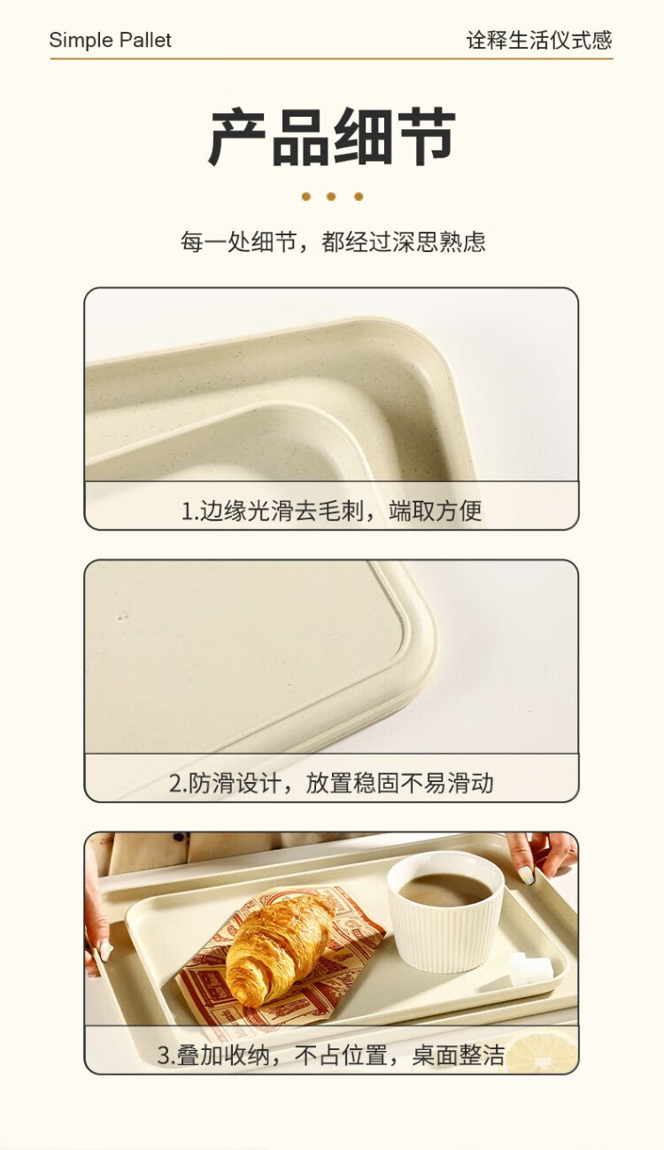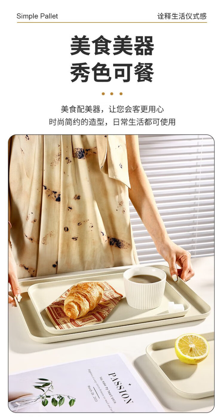 Caizhi (CAIZHI) rectangular tray tea tray household fruit tray breakfast tray storage tray living room snack tray medium beige CZ6753