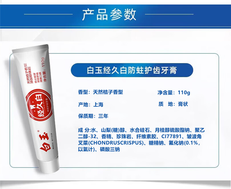 White Jade Long-lasting White Anti-moth Toothpaste 110g*6 pieces on clearance