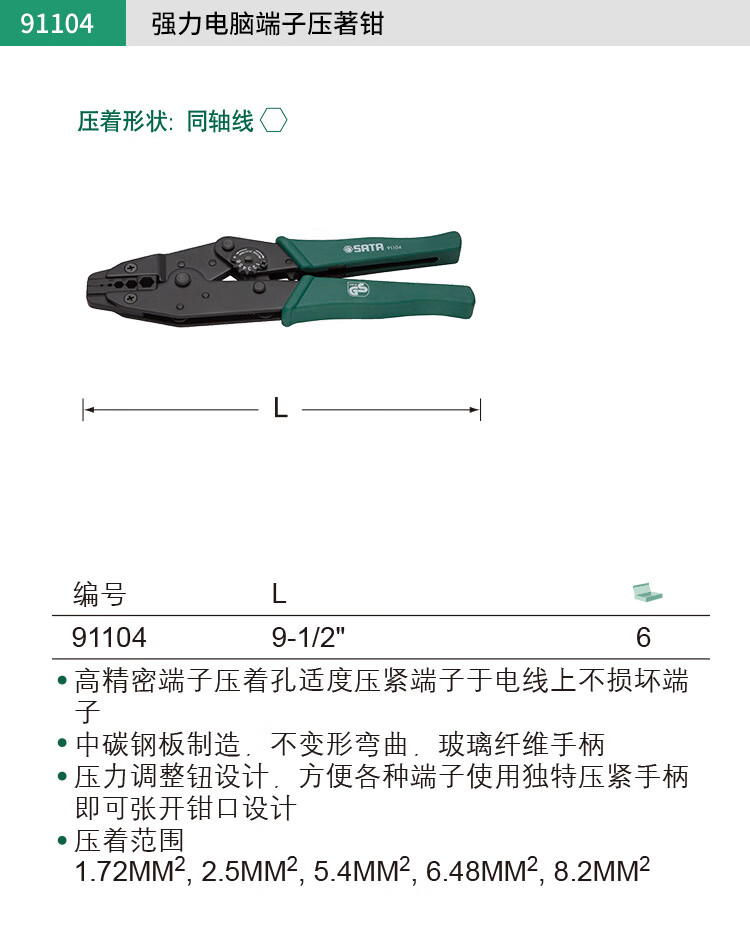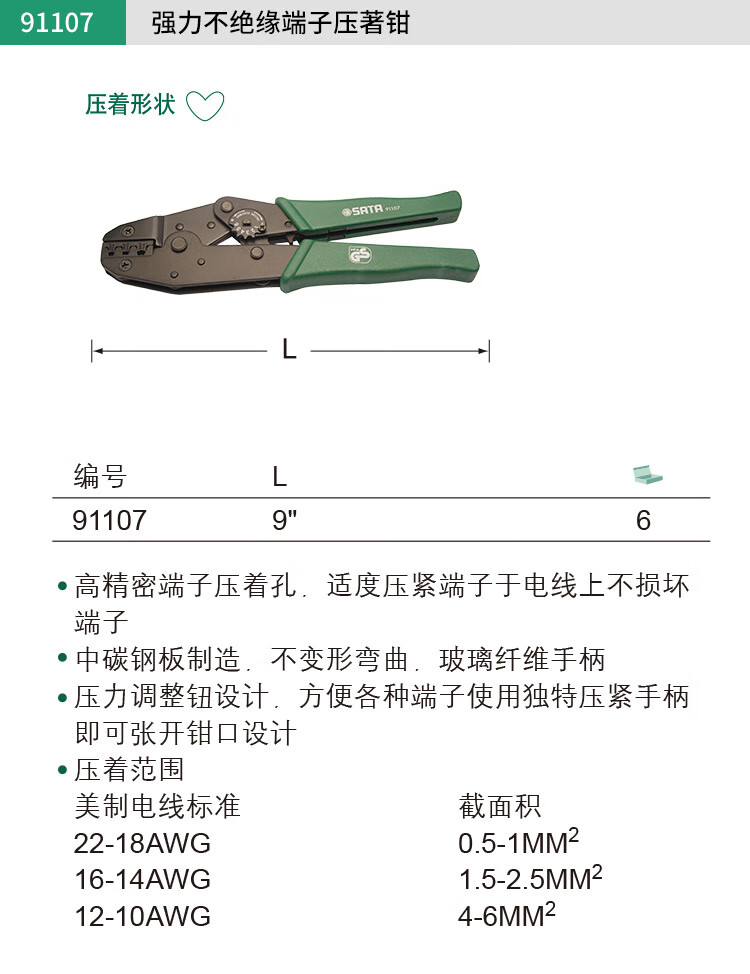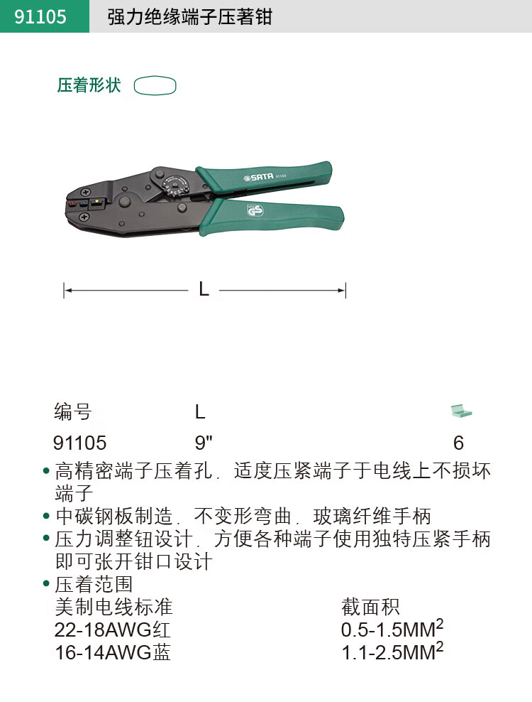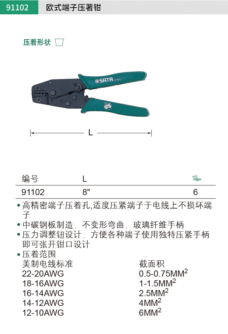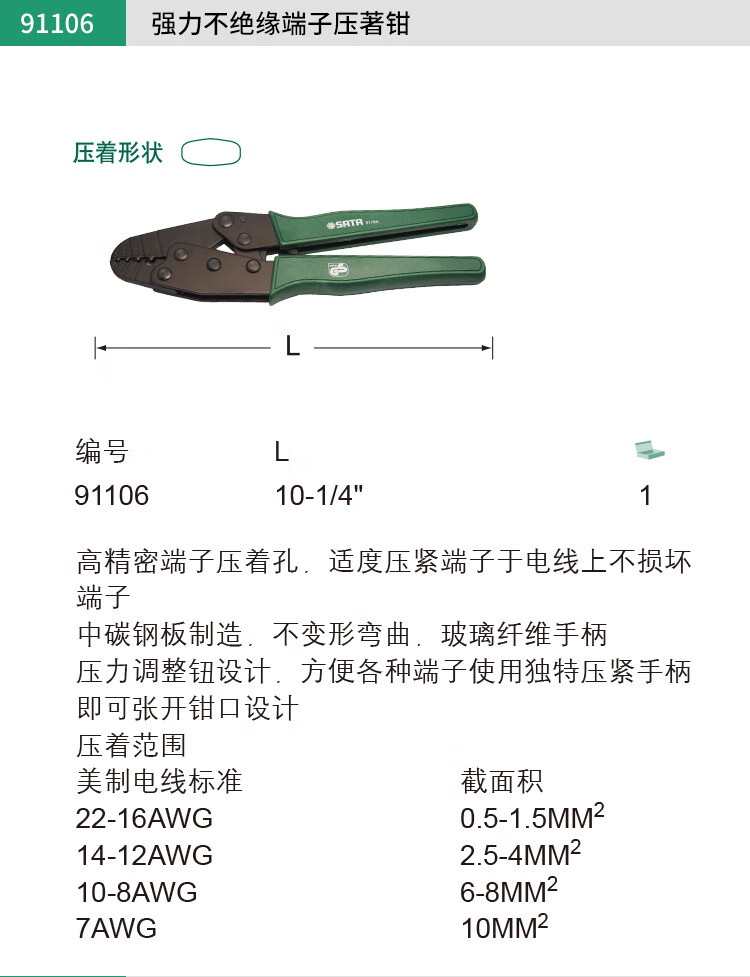 SATA 91116 Precision Bare Terminal Crimping Plier 7.5 (0.5-6MM2)