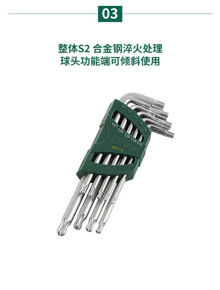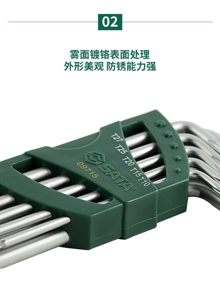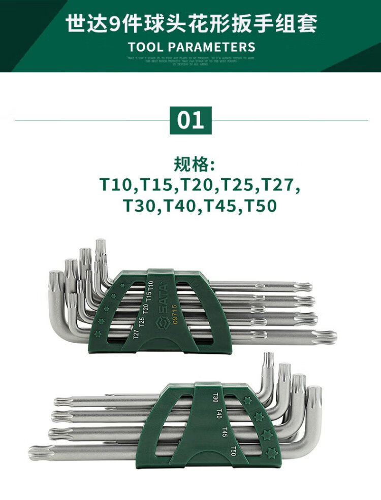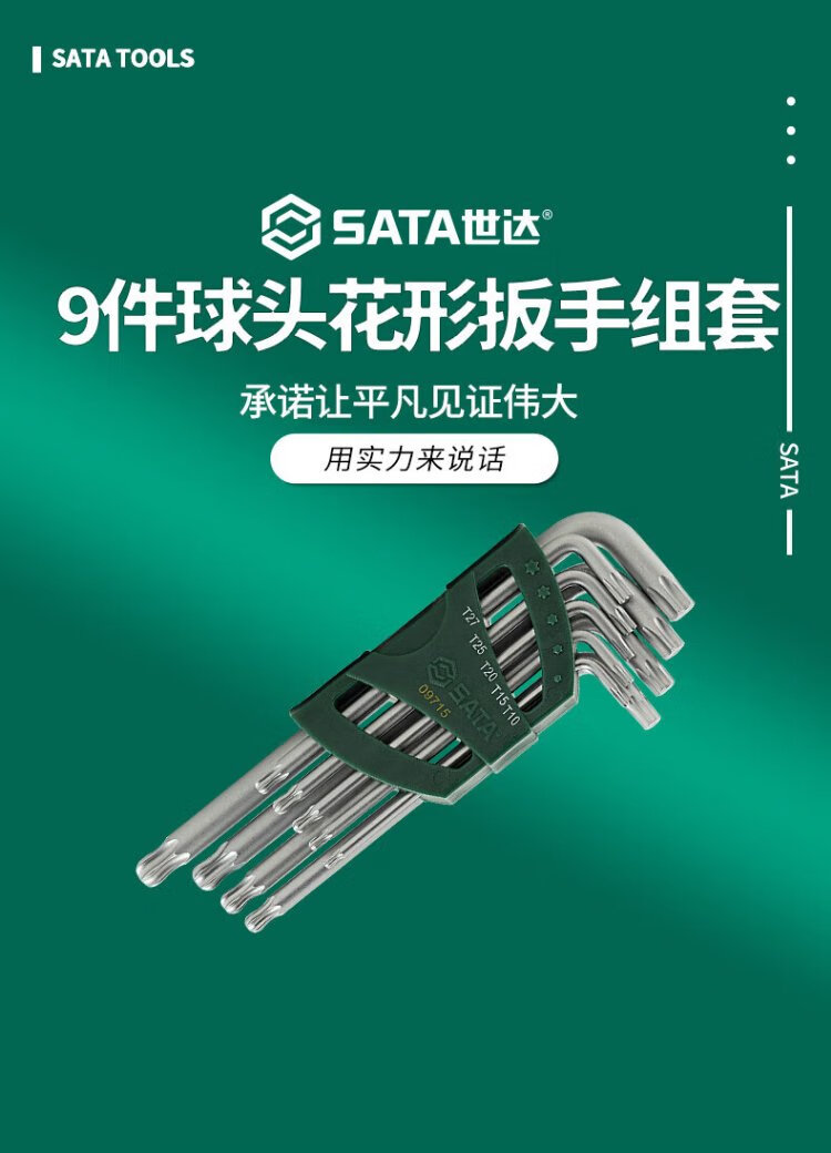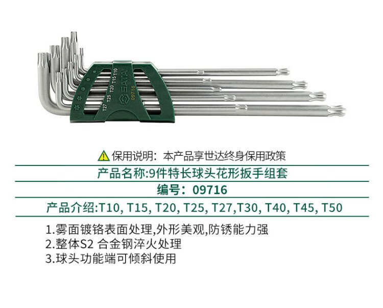 SATA Hexagonal Wrench Extended L-shaped Ball Head Flower Wrench Set 9pcs 09715