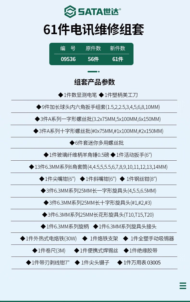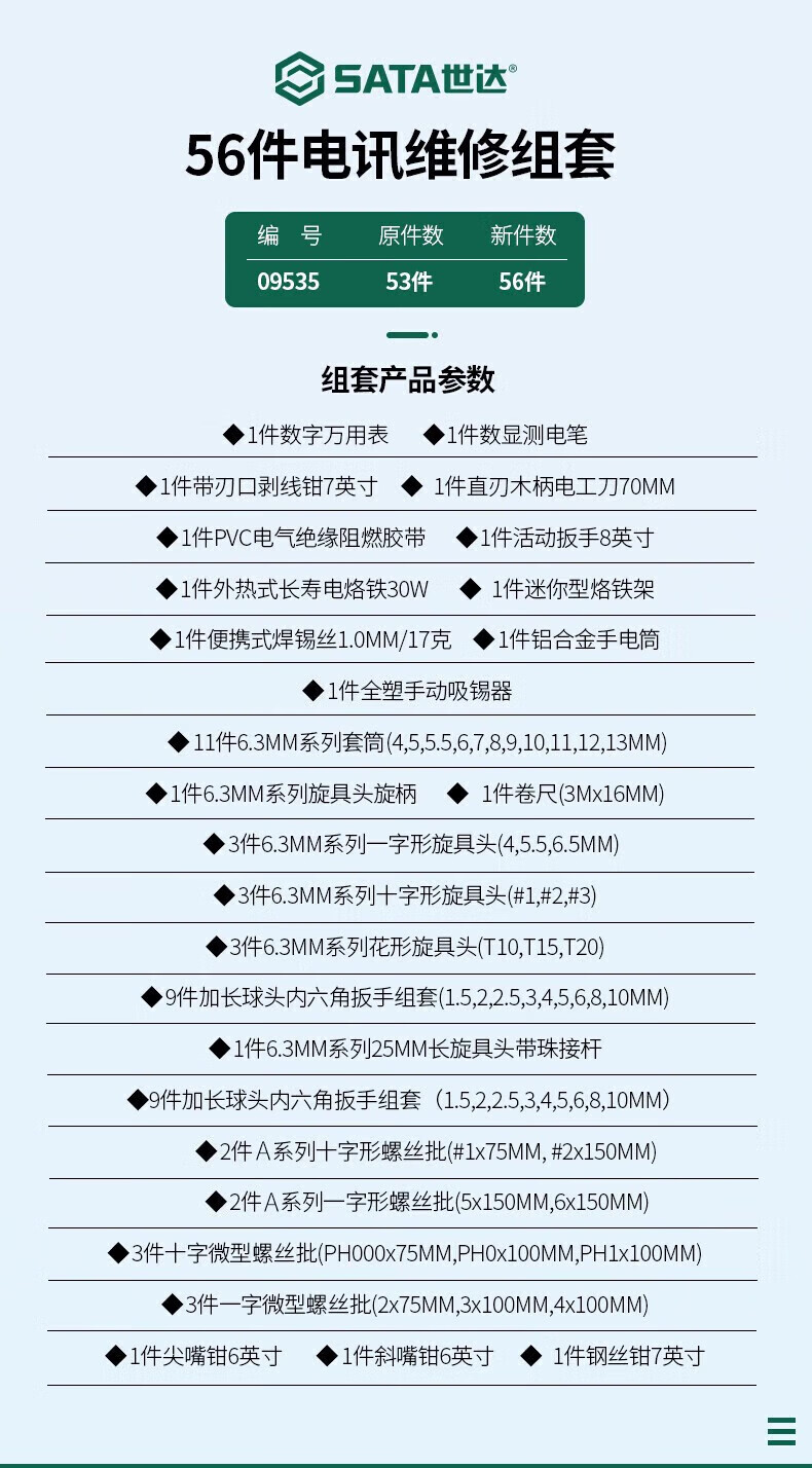 SATA 09555 23-piece portable installation and repair kit
