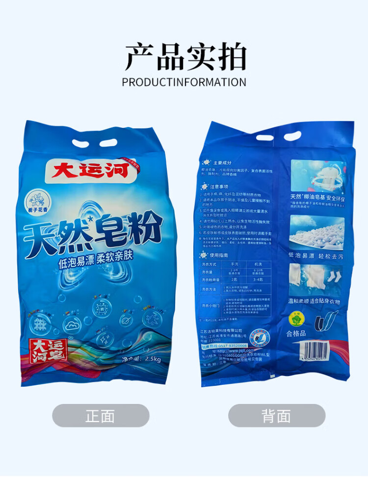 Grand Canal Natural Laundry Soap Powder 5 pounds Gardenia fragrance cleans underwear and clothes, removes stains and oil, is gentle and does not hurt your hands