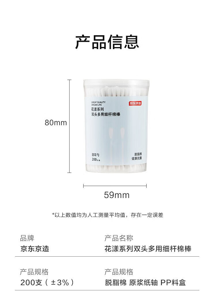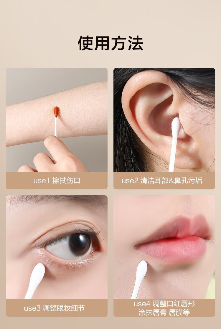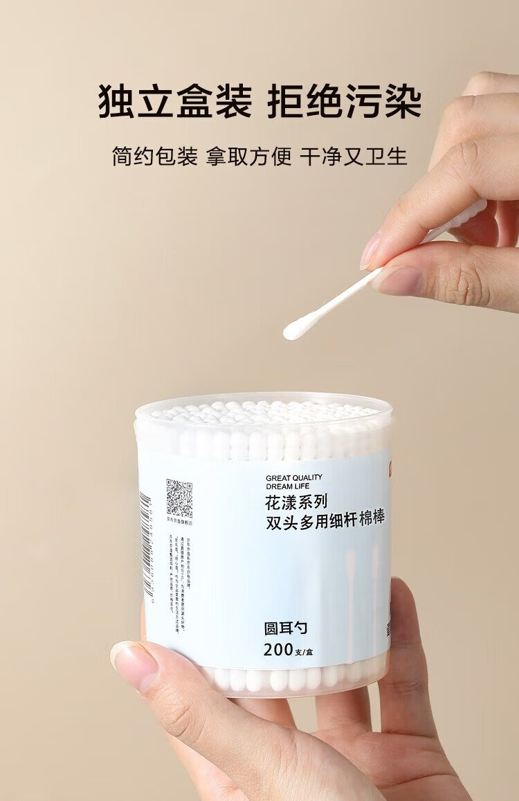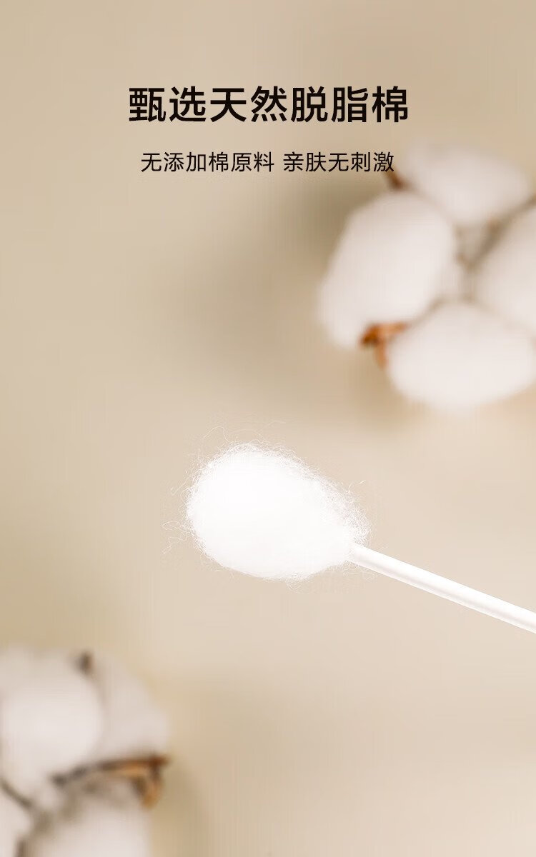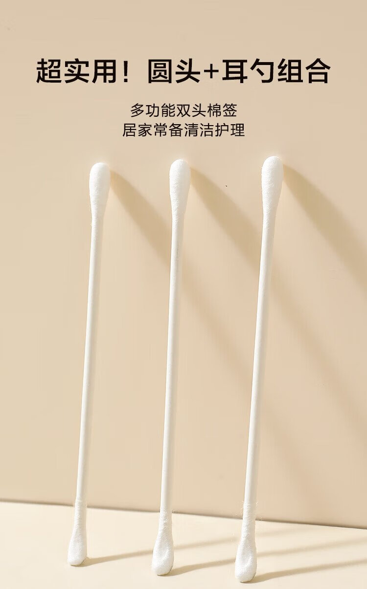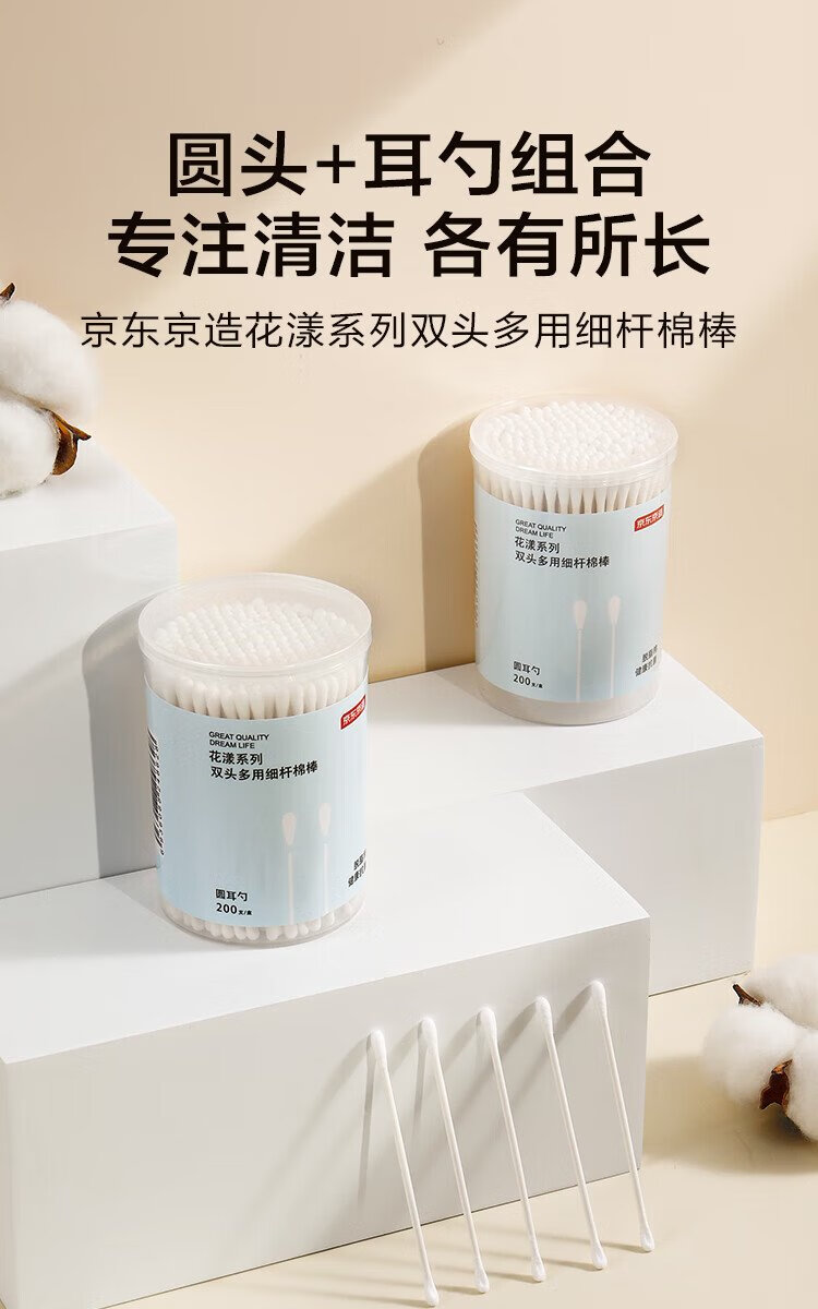 Jing Tokyo Zaohua Yang series cotton swabs for picking out ears, double-headed cotton swabs, ear-spoon head cotton swabs, disposable absorbent cotton swabs, 200 pieces