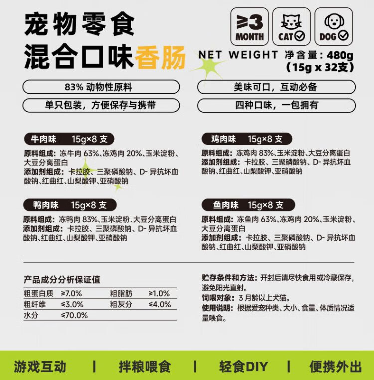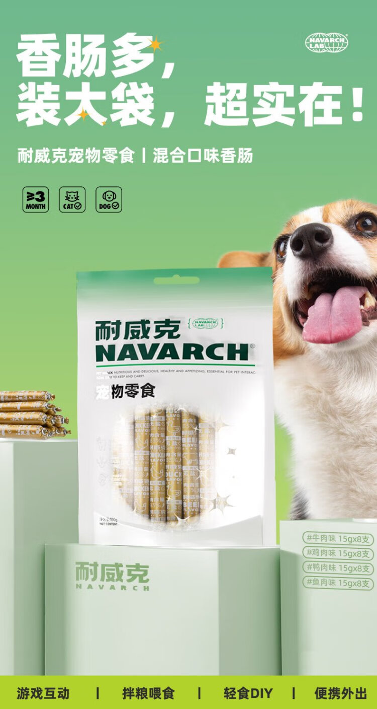 Newick staple food ham sausage dog snacks pet dog sausage training reward Teddy Golden Retriever mixed flavor 32 pieces