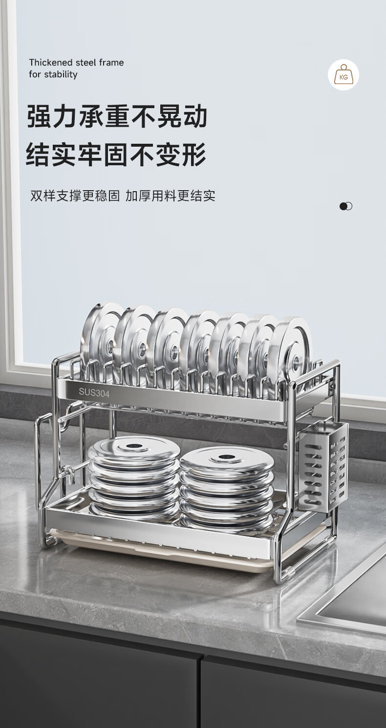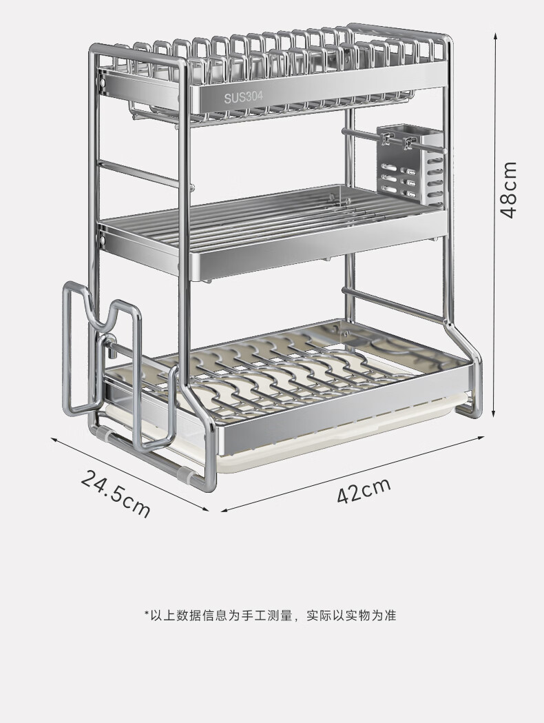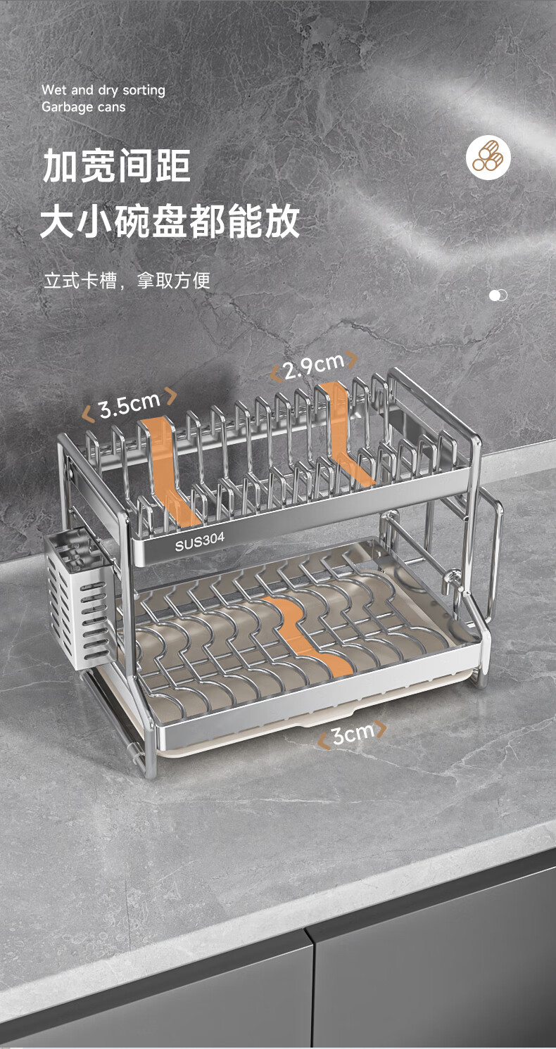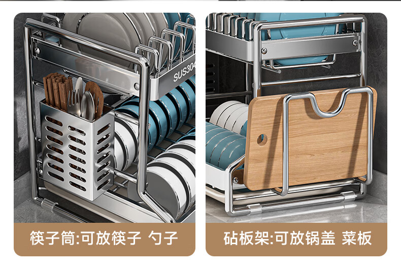 Added dish storage rack, bowl rack, drain rack, 304 stainless steel kitchen rack for dishes, chopsticks, plates, multifunctional cupboard
