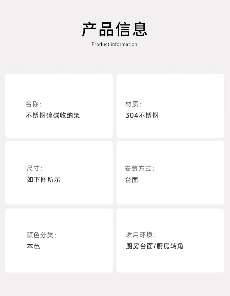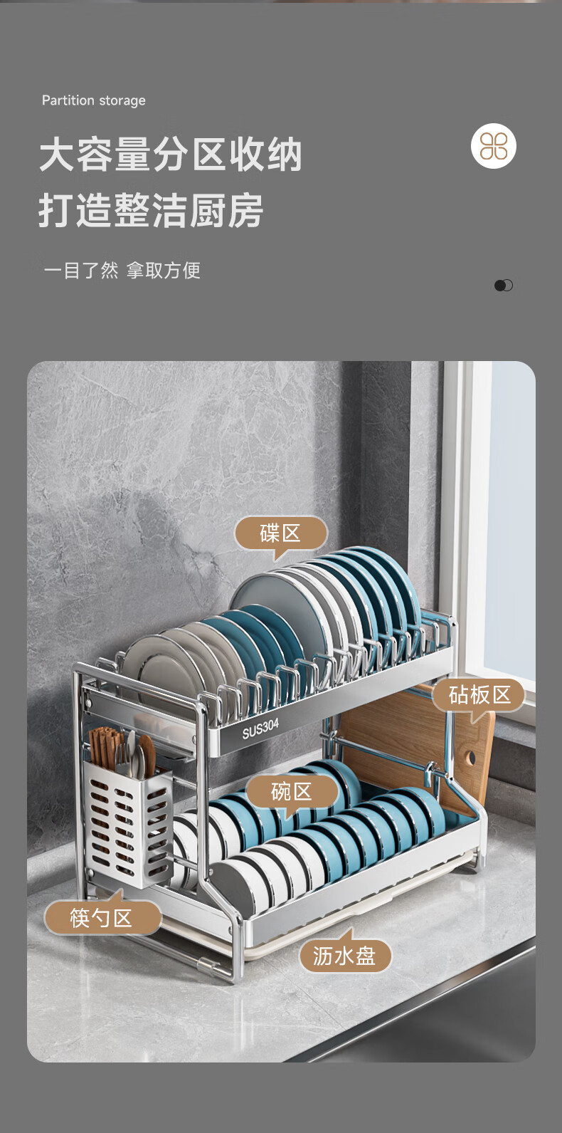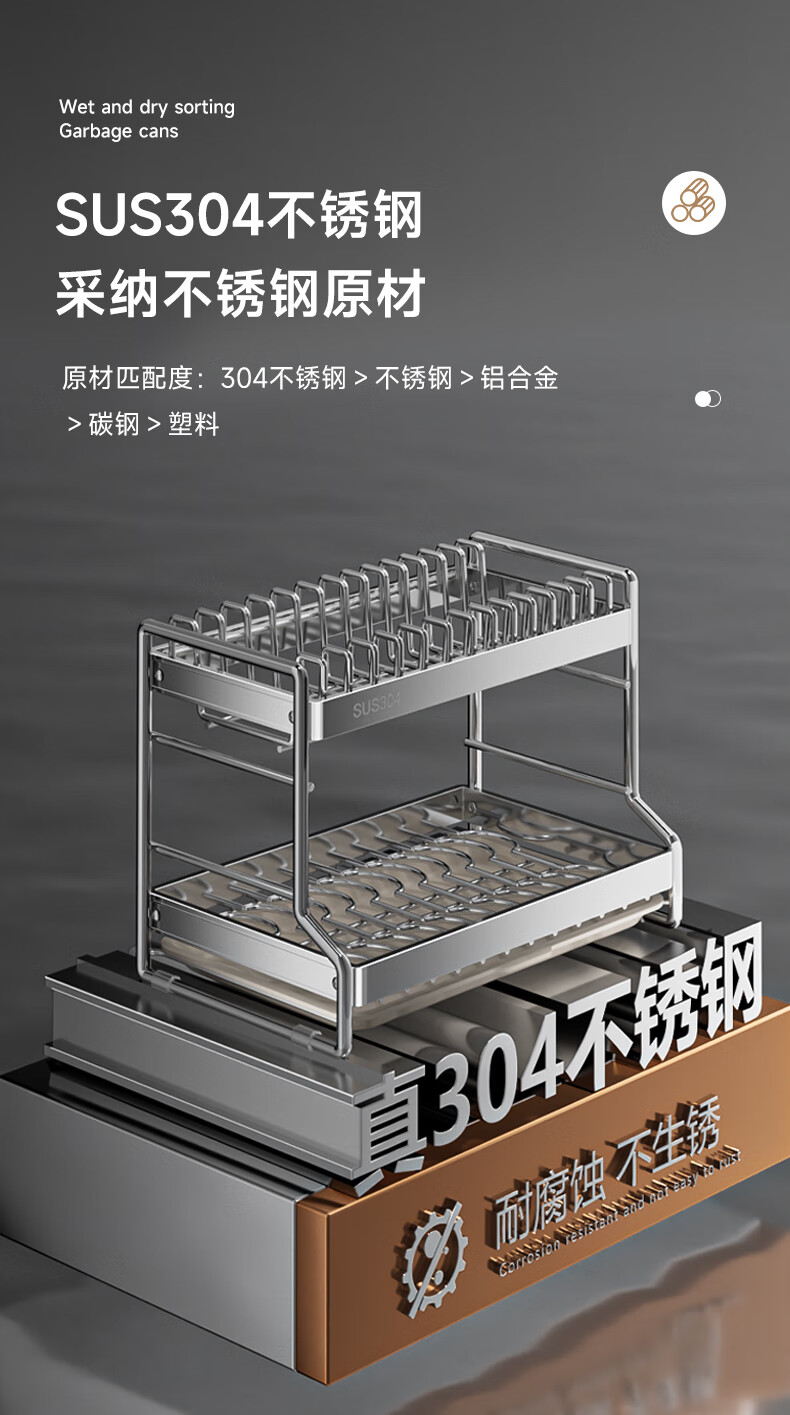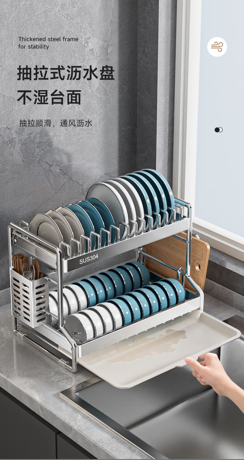 Added dish storage rack, bowl rack, drain rack, 304 stainless steel kitchen rack for dishes, chopsticks, plates, multifunctional cupboard