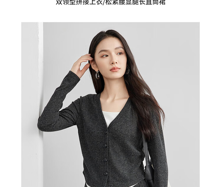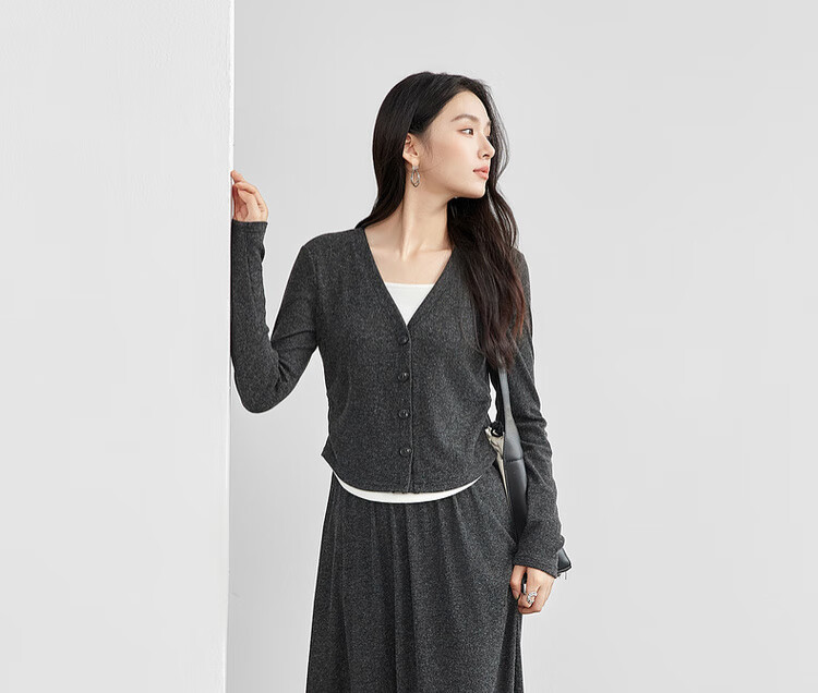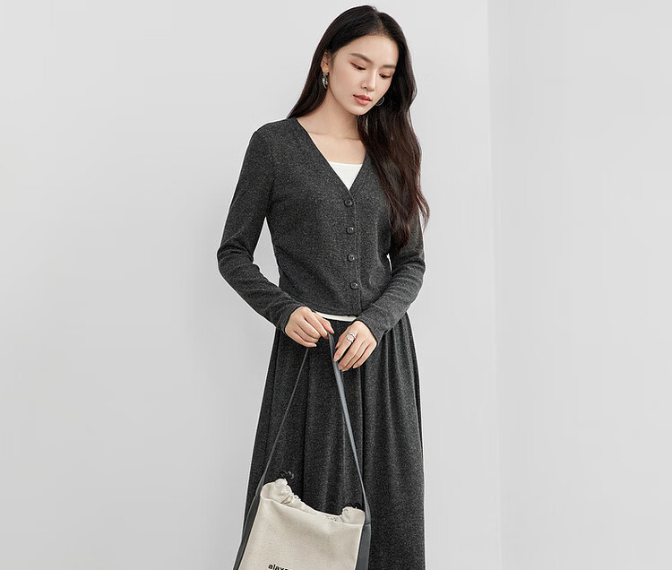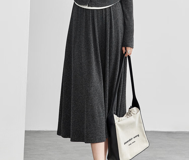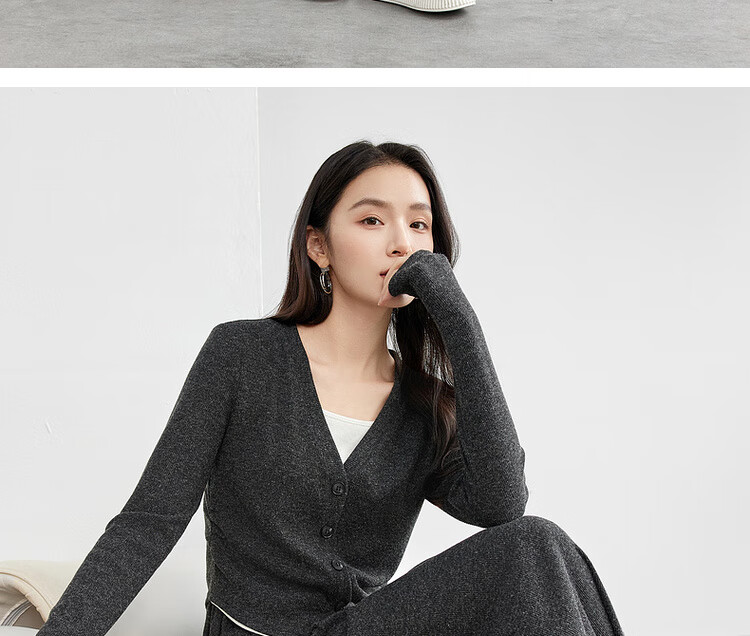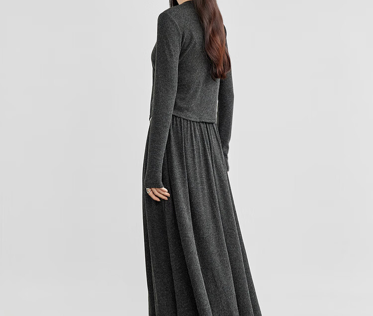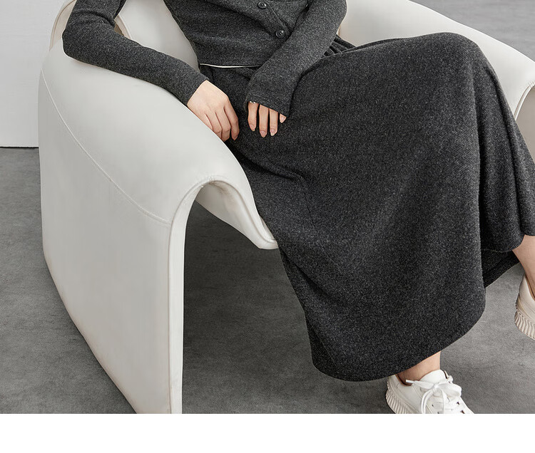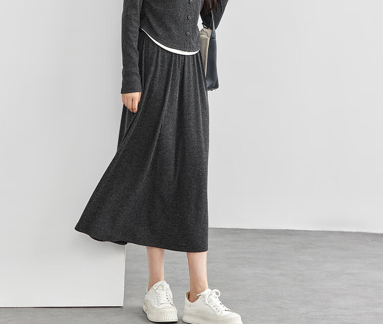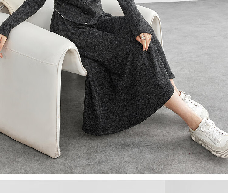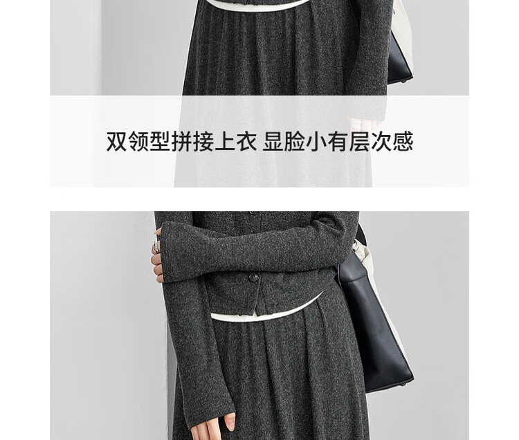 Shandubila Lazy Style Knitted Sweater Set Women's Autumn and Winter Two-piece Top Slimming Skirt Two-piece Set Dark Gray XL