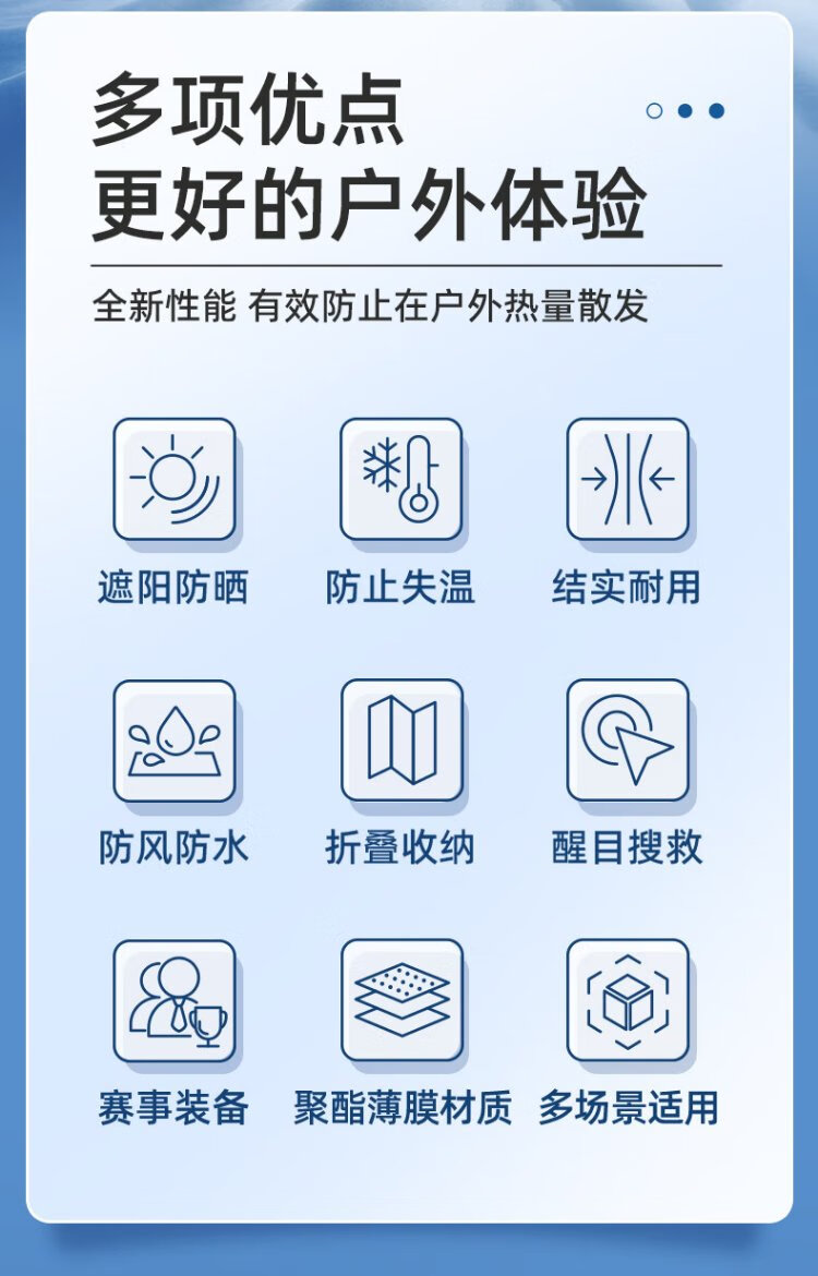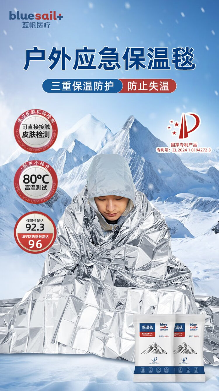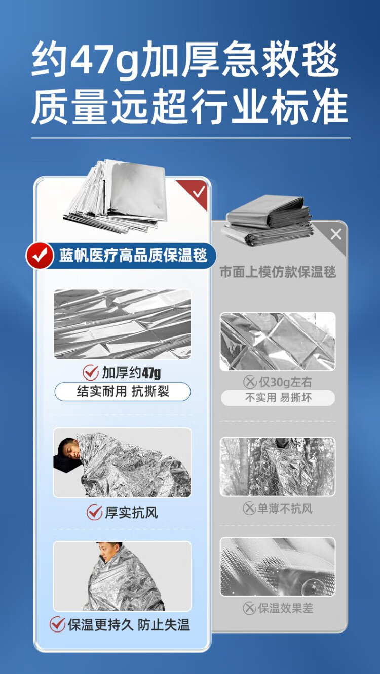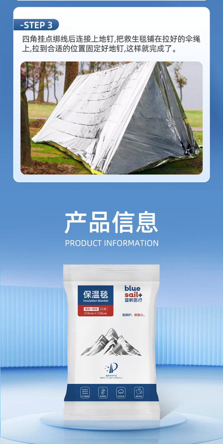 Blue sail medical (blue sail+) earthquake heavy rain search and rescue life-saving blanket emergency blanket insulation blanket outdoor equipment polyester film blanket outdoor equipment silver two-color 130*210cm 10 strips/bag
